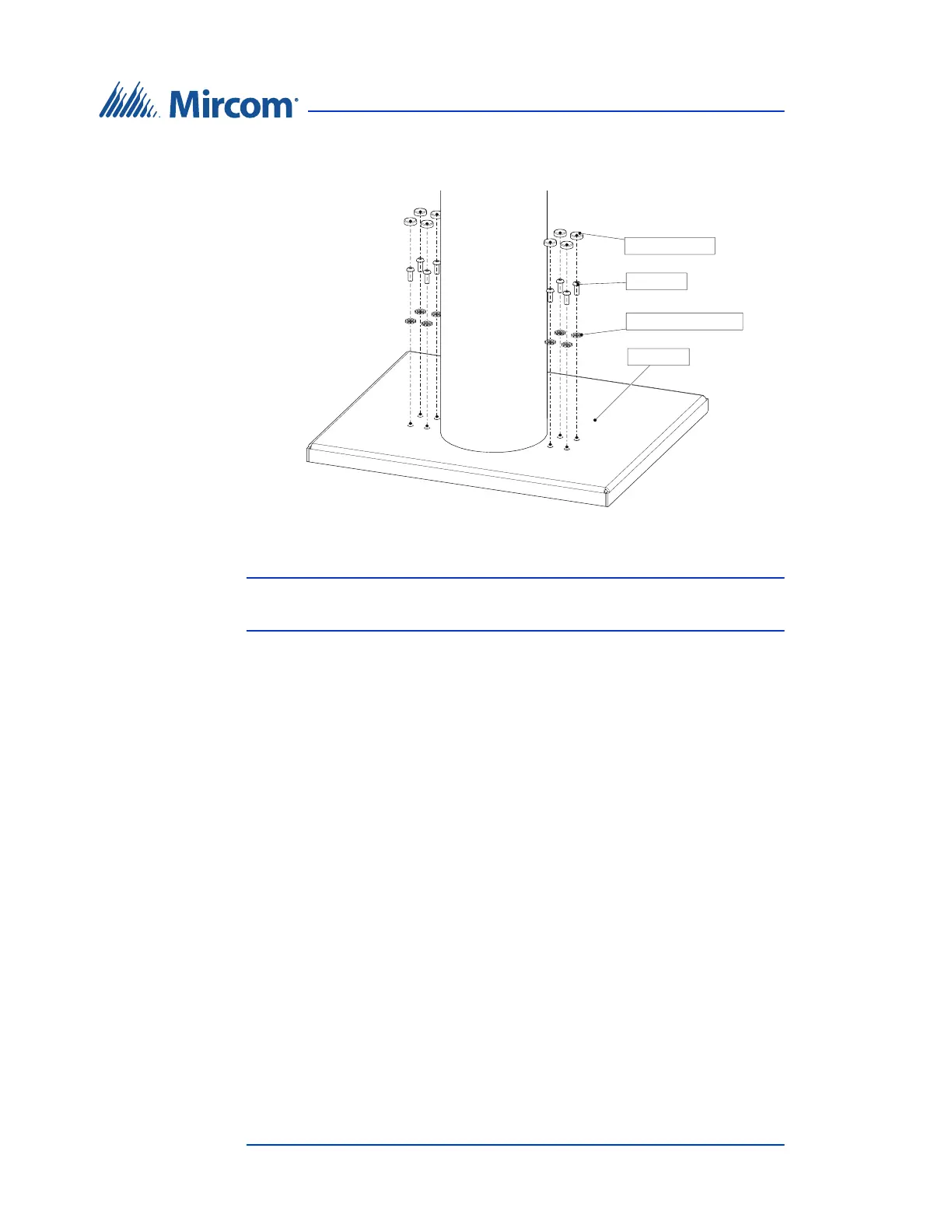 2. Secure the stand onto the base plate using the screw cover bases, screws,