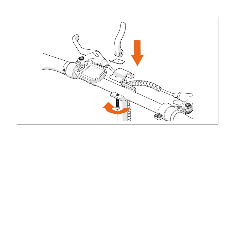 6. Place the clamp of the handlebar clamp upright on the thumbscrew and slightly fasten
