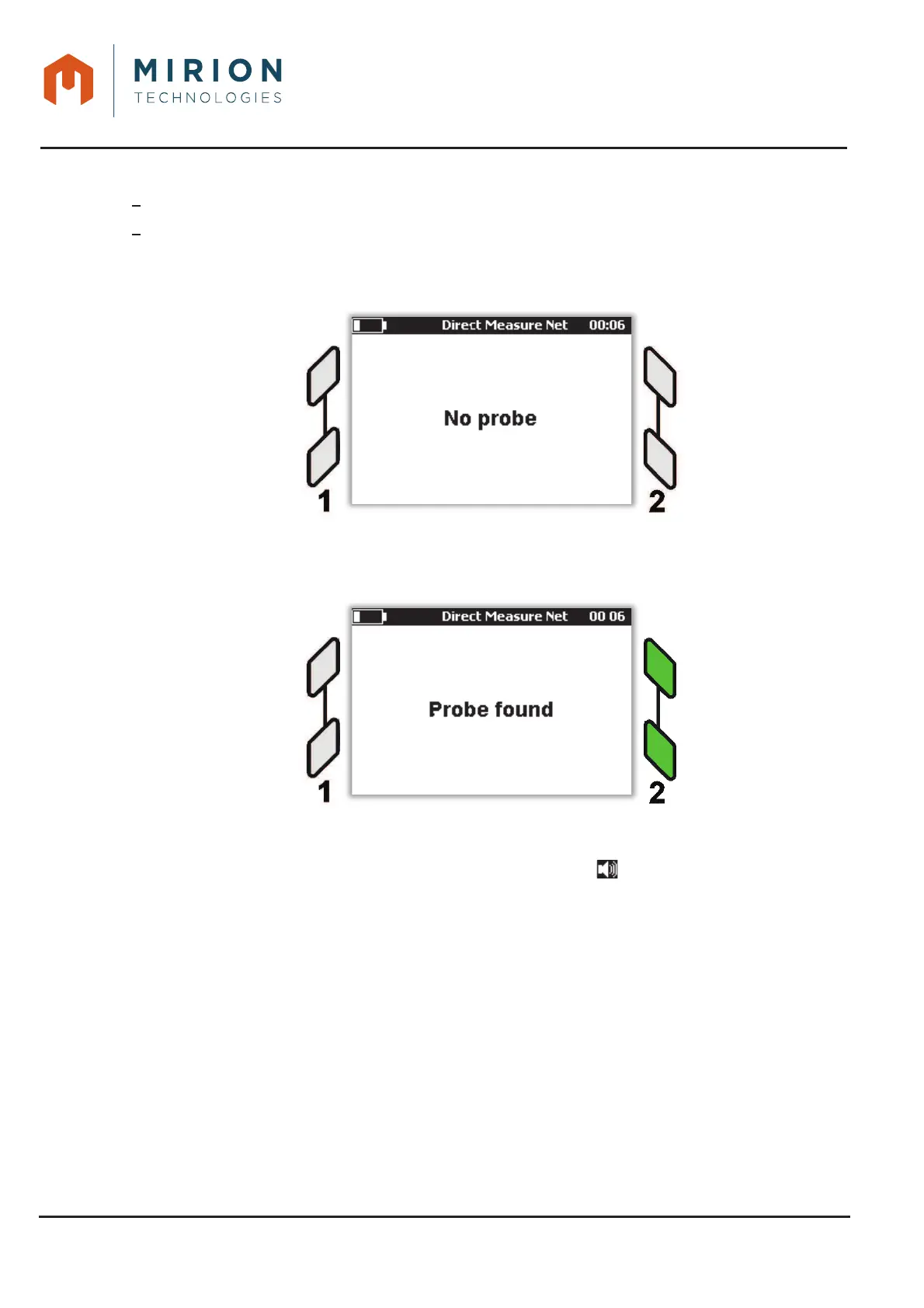 By connecting a probe to the interface 2, the two LEDs associated will flash with on the screen the