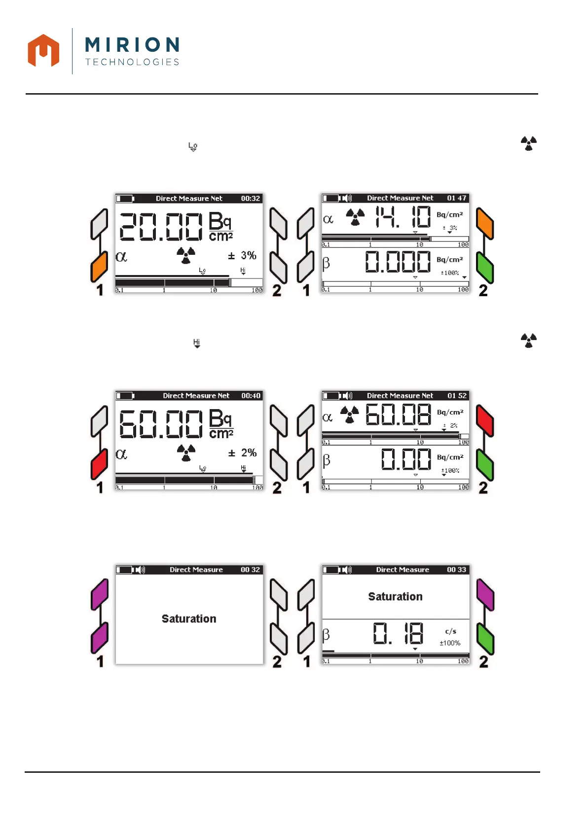 Note: All alarm or saturation events can be viewed in LOG files (See § 15)