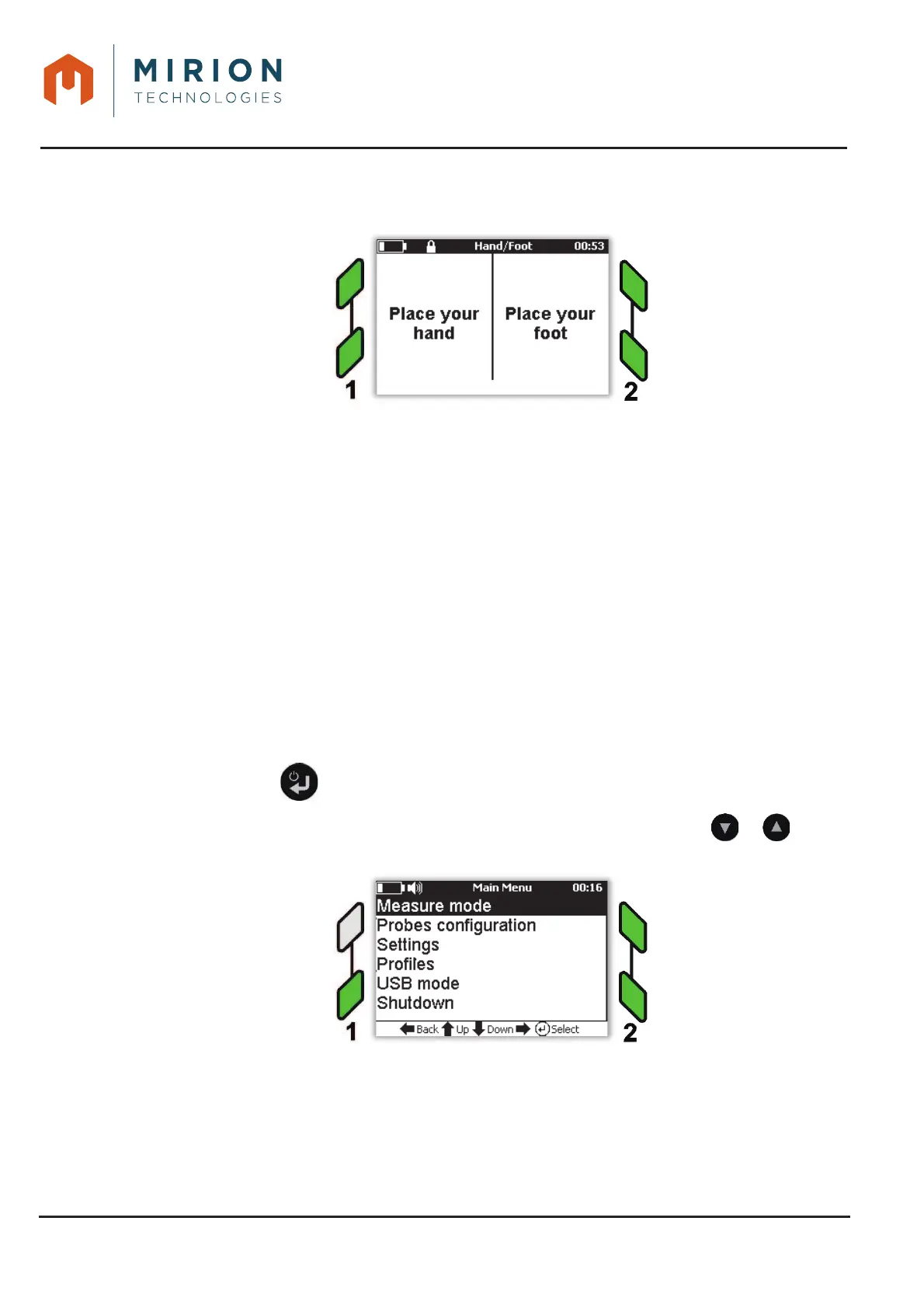 Note: The measures of the hand/foot mode are saved automatically.