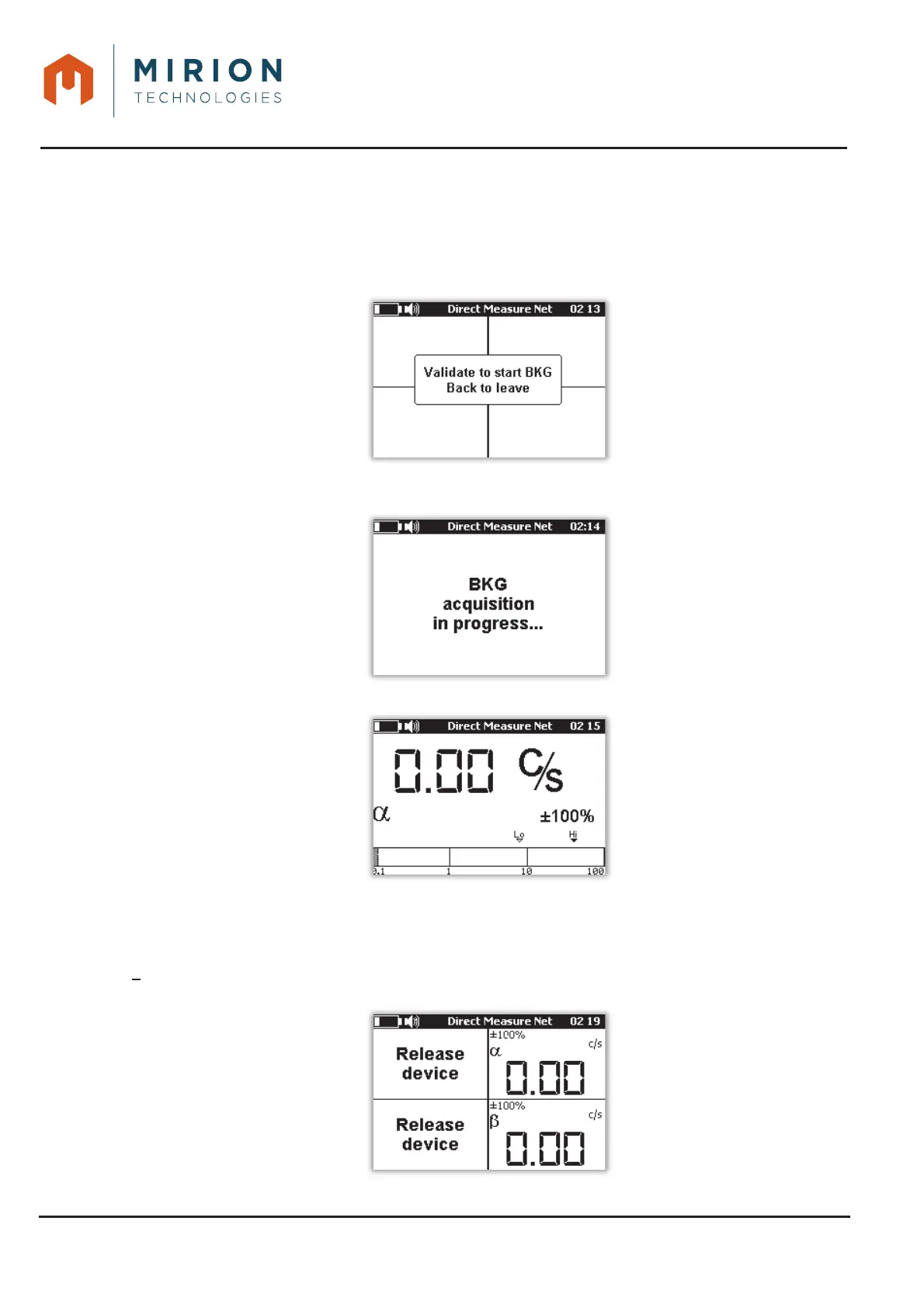 - After validation, the device switches to background noise measurement with the minimum
