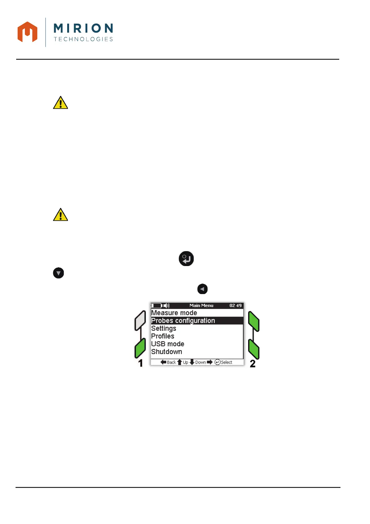 To view the IPC, display the main menu (key ), and select the « Probes configuration » line (key
