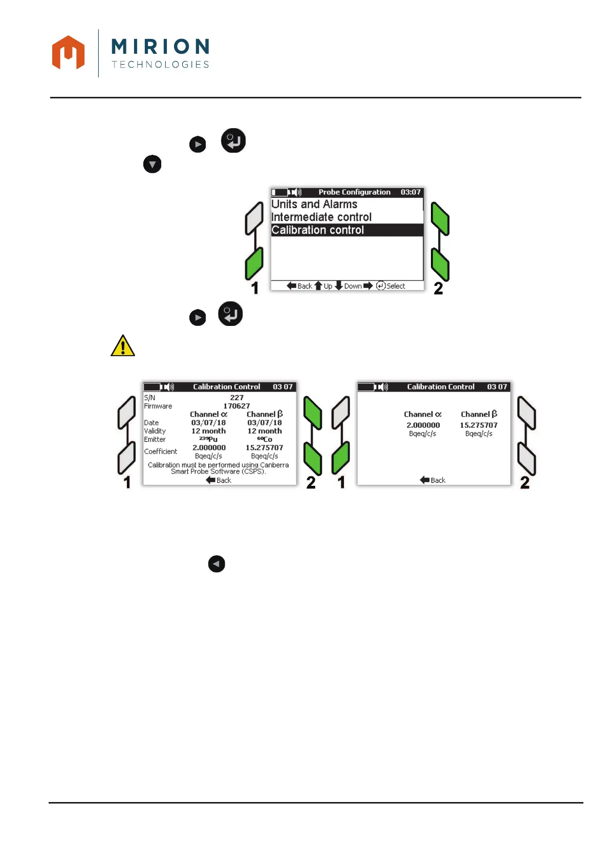Press the or key to display the « Probe Configuration » screen and press the key2.
