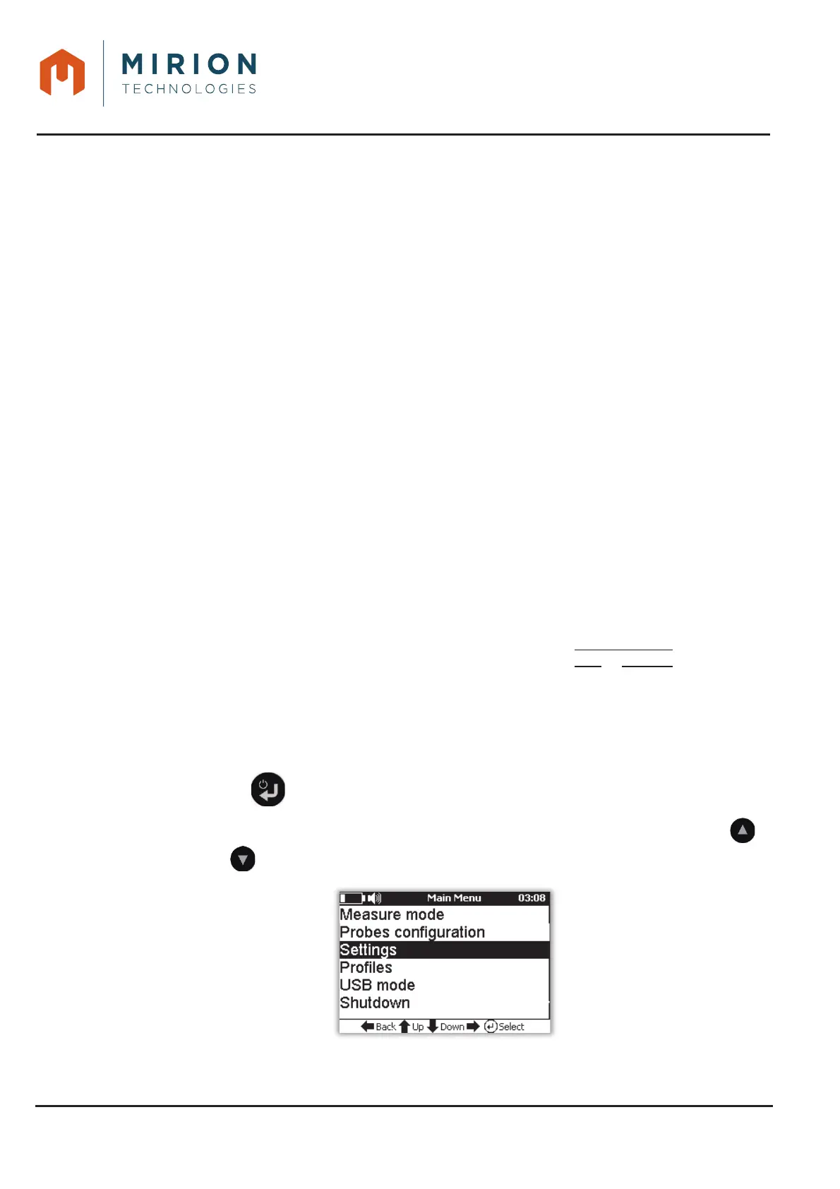 Note: The « Measure Mode » line is selected by default. If necessary press the key or