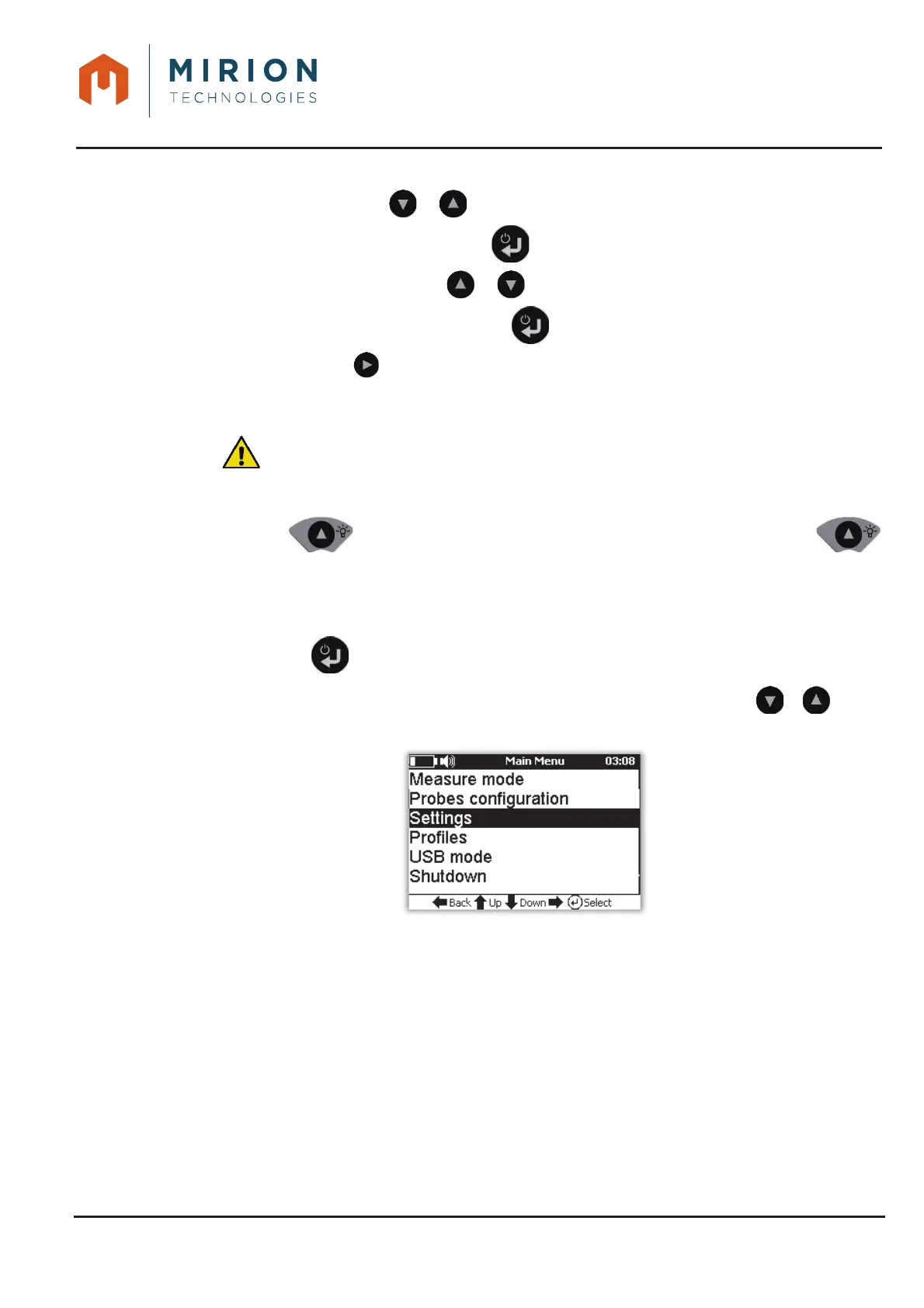Note: The « Measure Mode » line is selected by default. If necessary press the or keys to