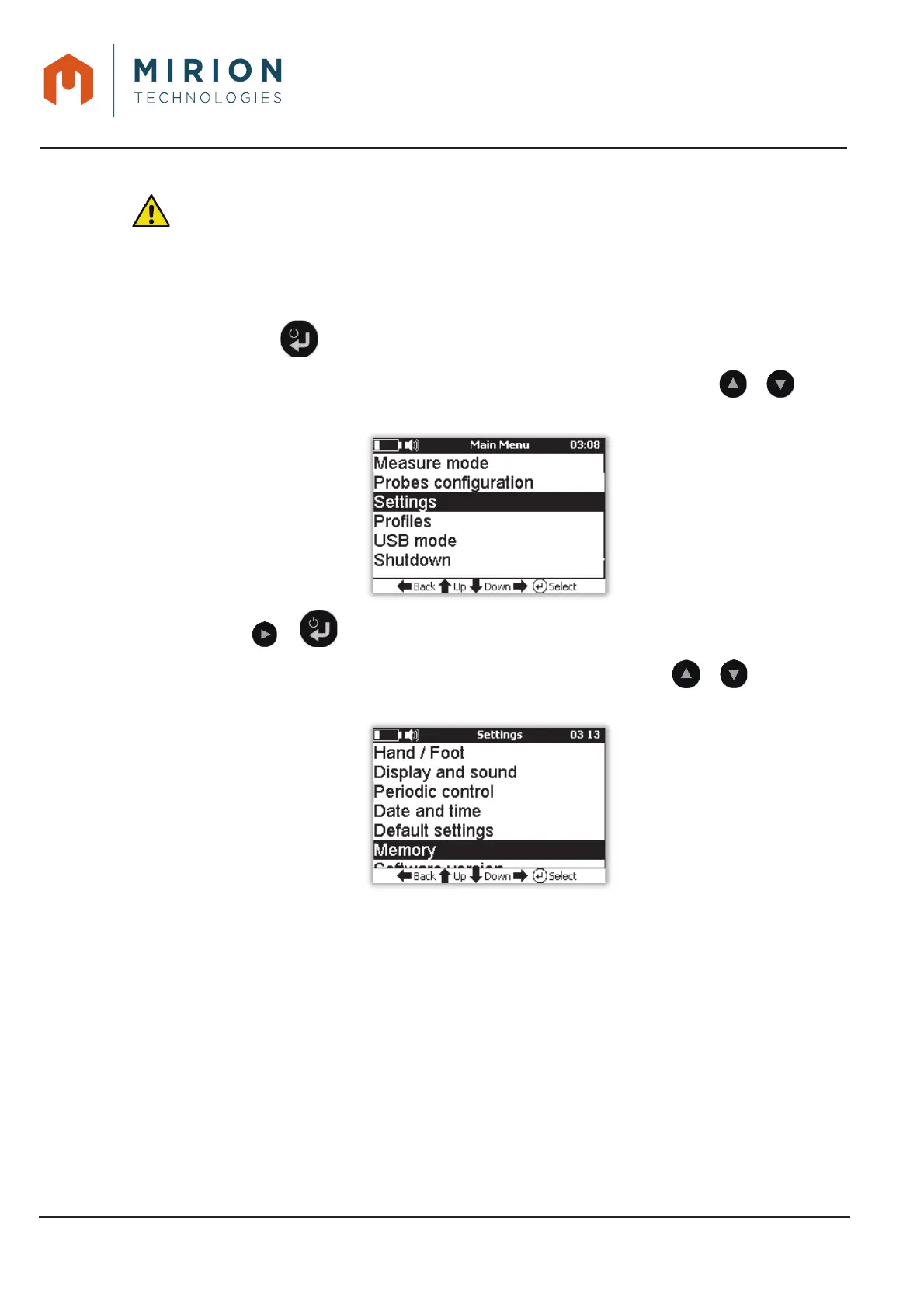 Note: The « Measure Mode » line is selected by default. If necessary press the or keys to