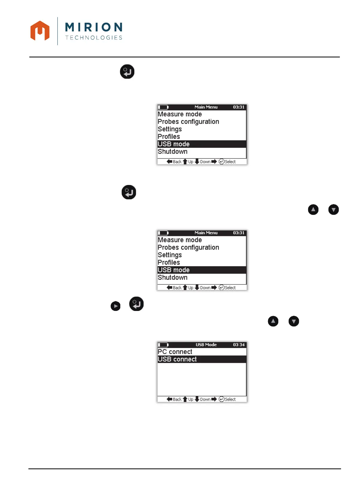 Press the or key to display the « USB Mode » screen.2.