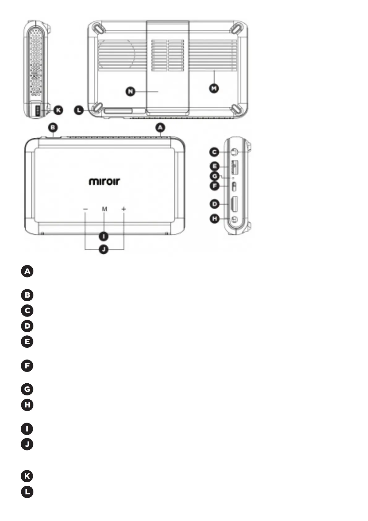 Power Port – Connect included AC Adapter/Charger for power. Fully charge battery before the first use