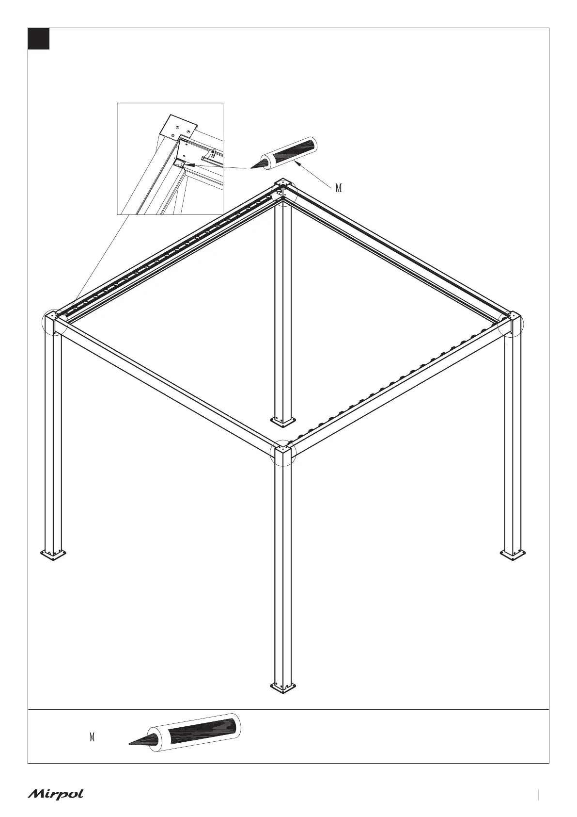 Nałóż równomiernie klej do szkła (M) na odpływ słupa i połączenia belek.