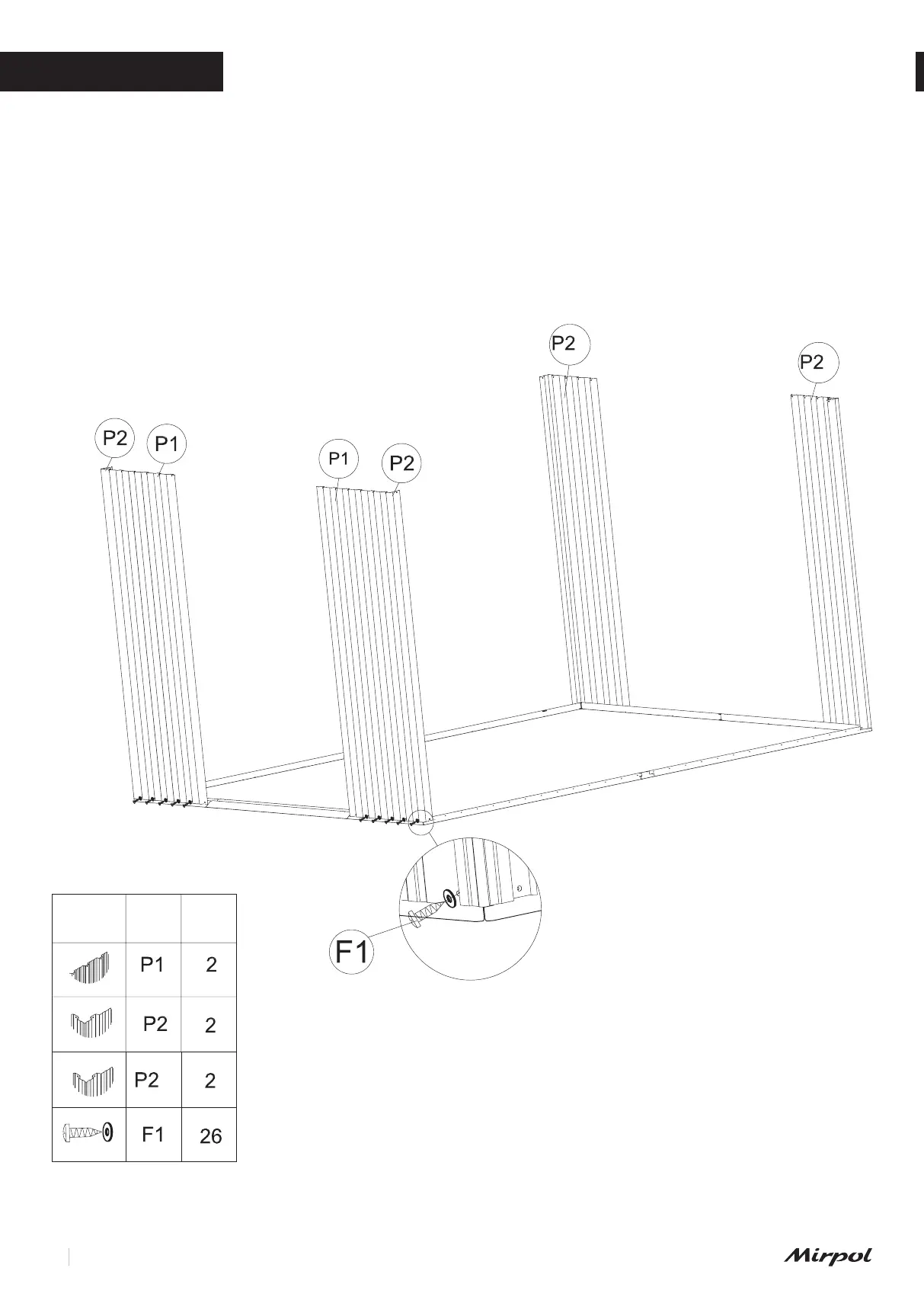 Umieść panele ścienne (P1), (P2), (P2A) na prętach bazowych