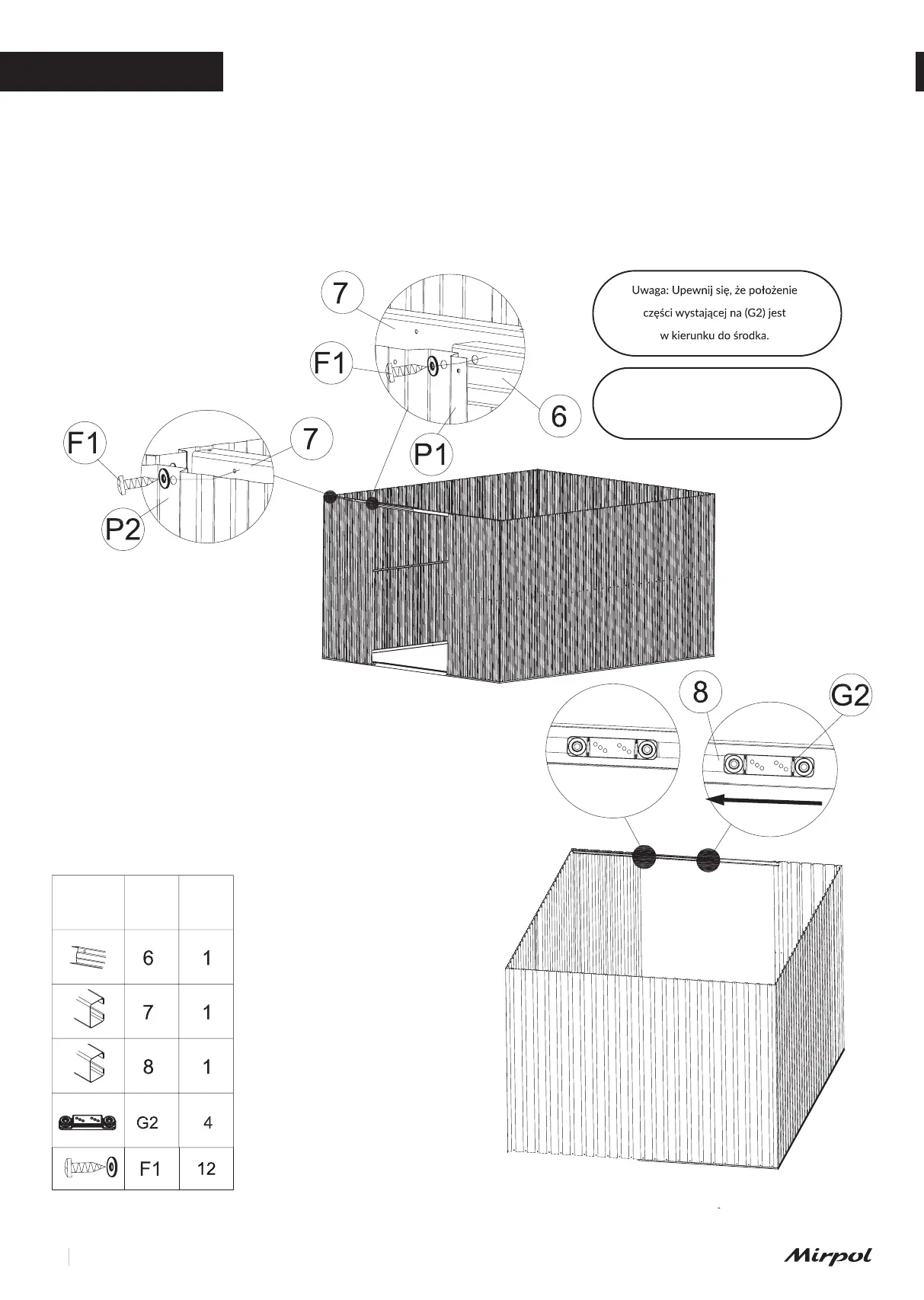 od wewnątrz. Wyrównaj otwory w panelach ściennych. Użyj śrub