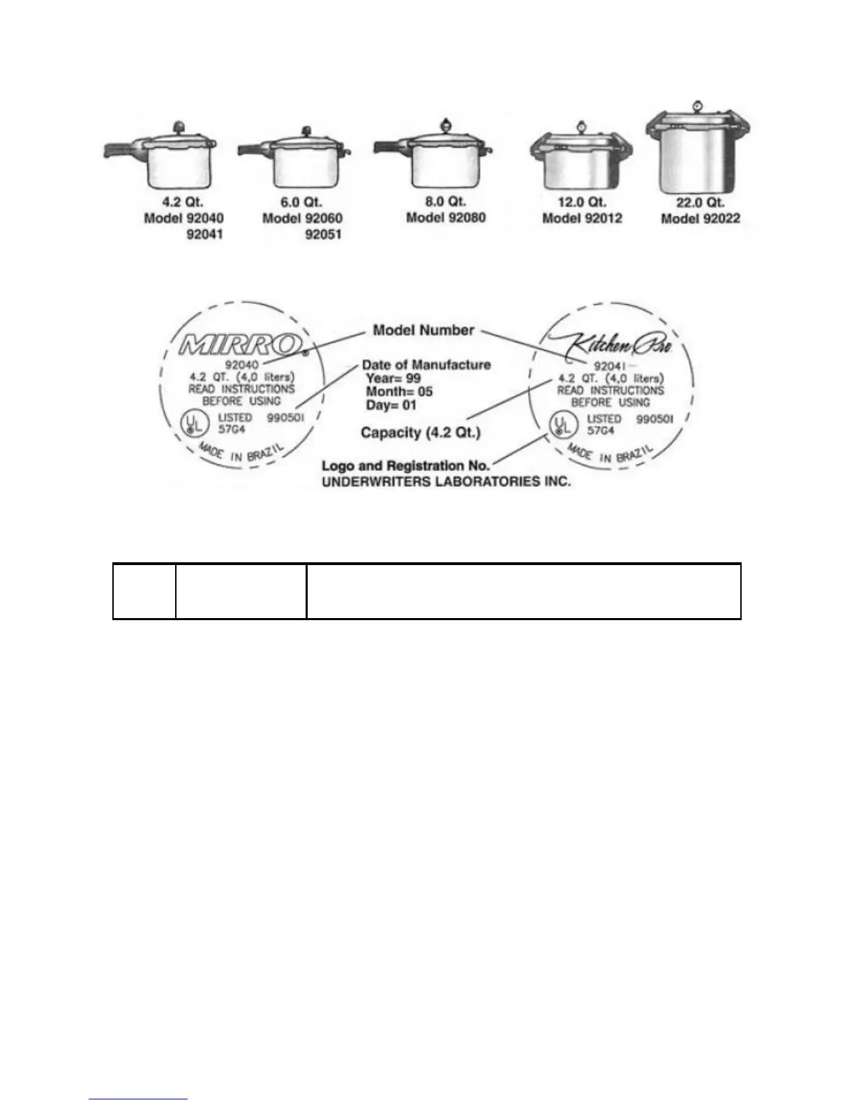 Write down the capacity of your cooker, model number and date of manufacture. This information is