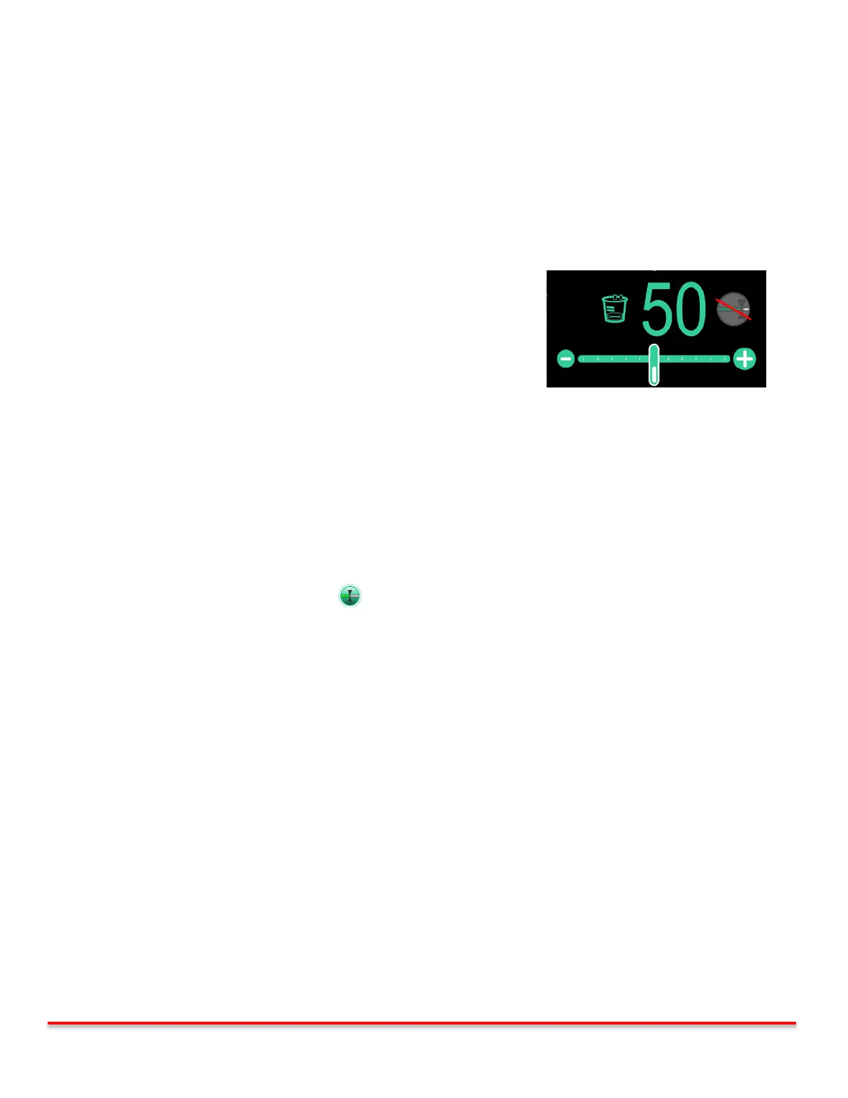 The vacuum level may be adjusted by pressing the “+” or “-“ on the green