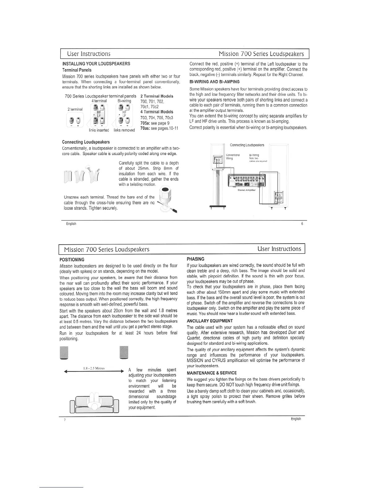 Mission 704 - Loudspeaker Installation, Connection, and Care; Installing and Connecting Loudspeakers; Optimizing Loudspeaker Positioning; Ensuring Correct Loudspeaker Phasing