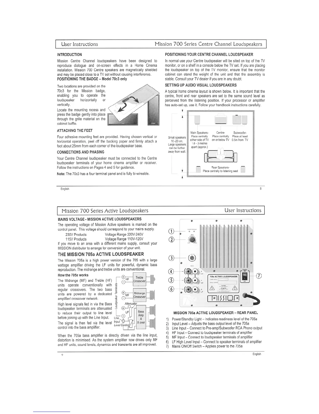 Mission 704 - Centre Channel Loudspeaker Setup; Centre Channel Loudspeaker Introduction; Attaching Feet and Connections; Audio Visual Speaker System Setup