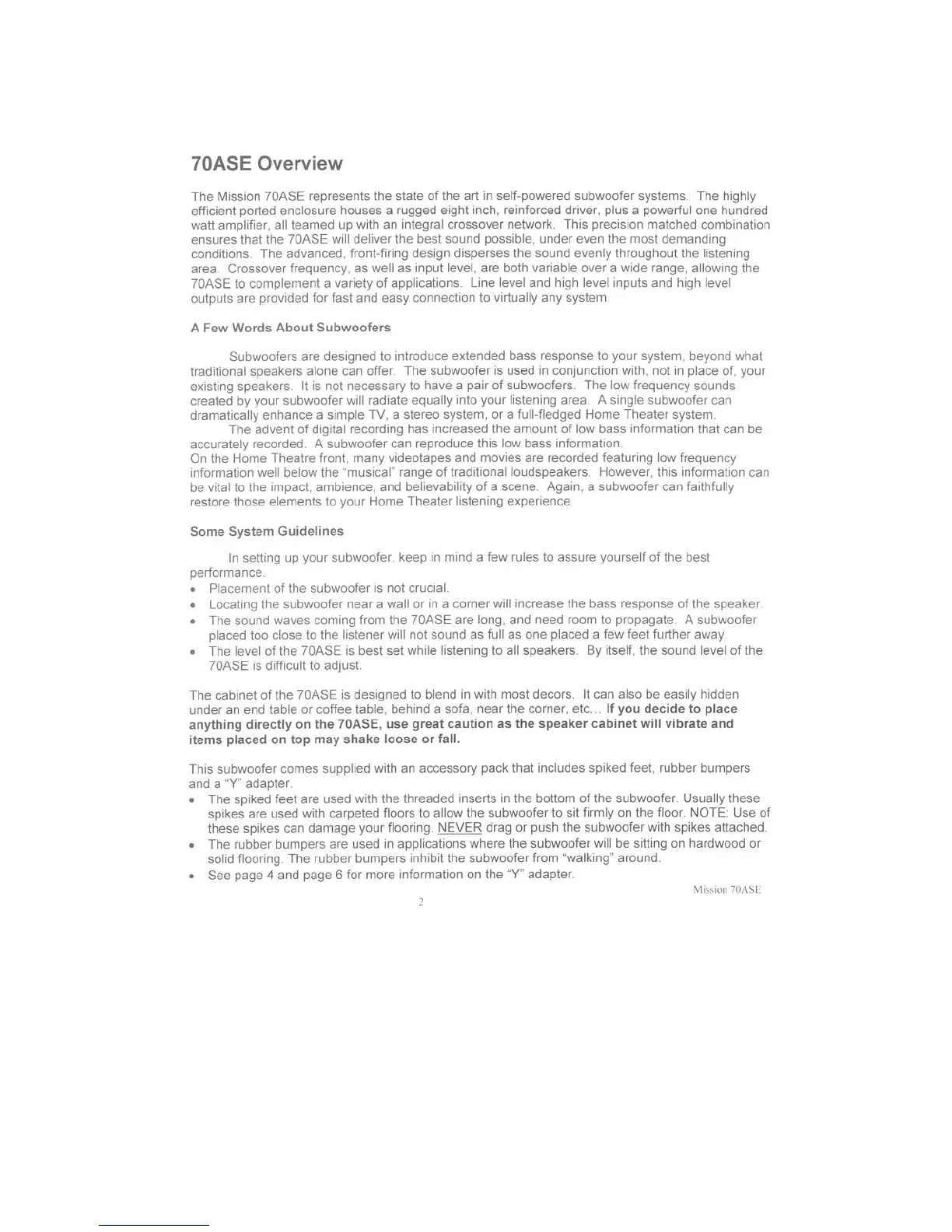 Mission 70ASE - 70 ASE Overview; Understanding Subwoofers; System Setup Guidelines