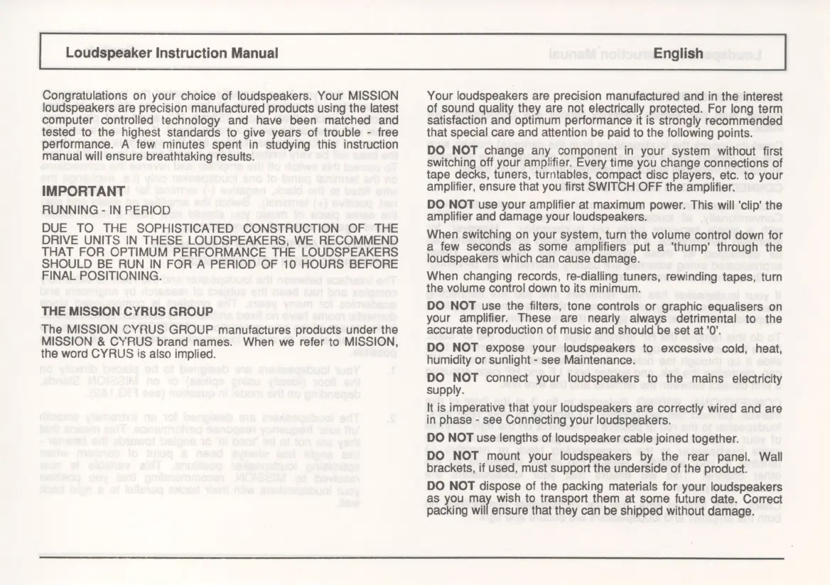 on your choice of loudspeakers. Your MISSION Your loudspeakers are precision manufactured