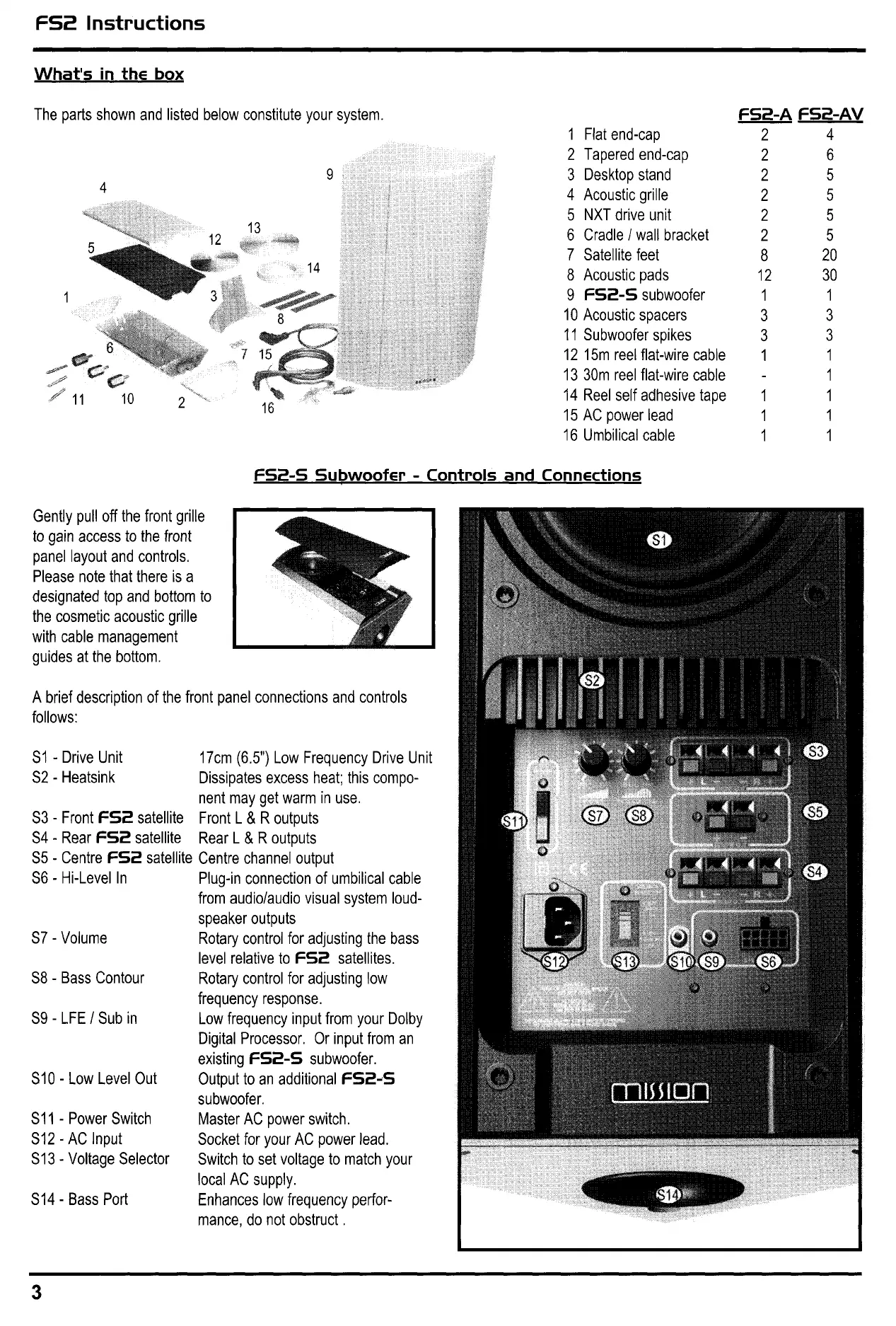 Mission FS2 - F52 Instructions; Whats in the Box; F52-5 Subwoofer-Controls and Connections