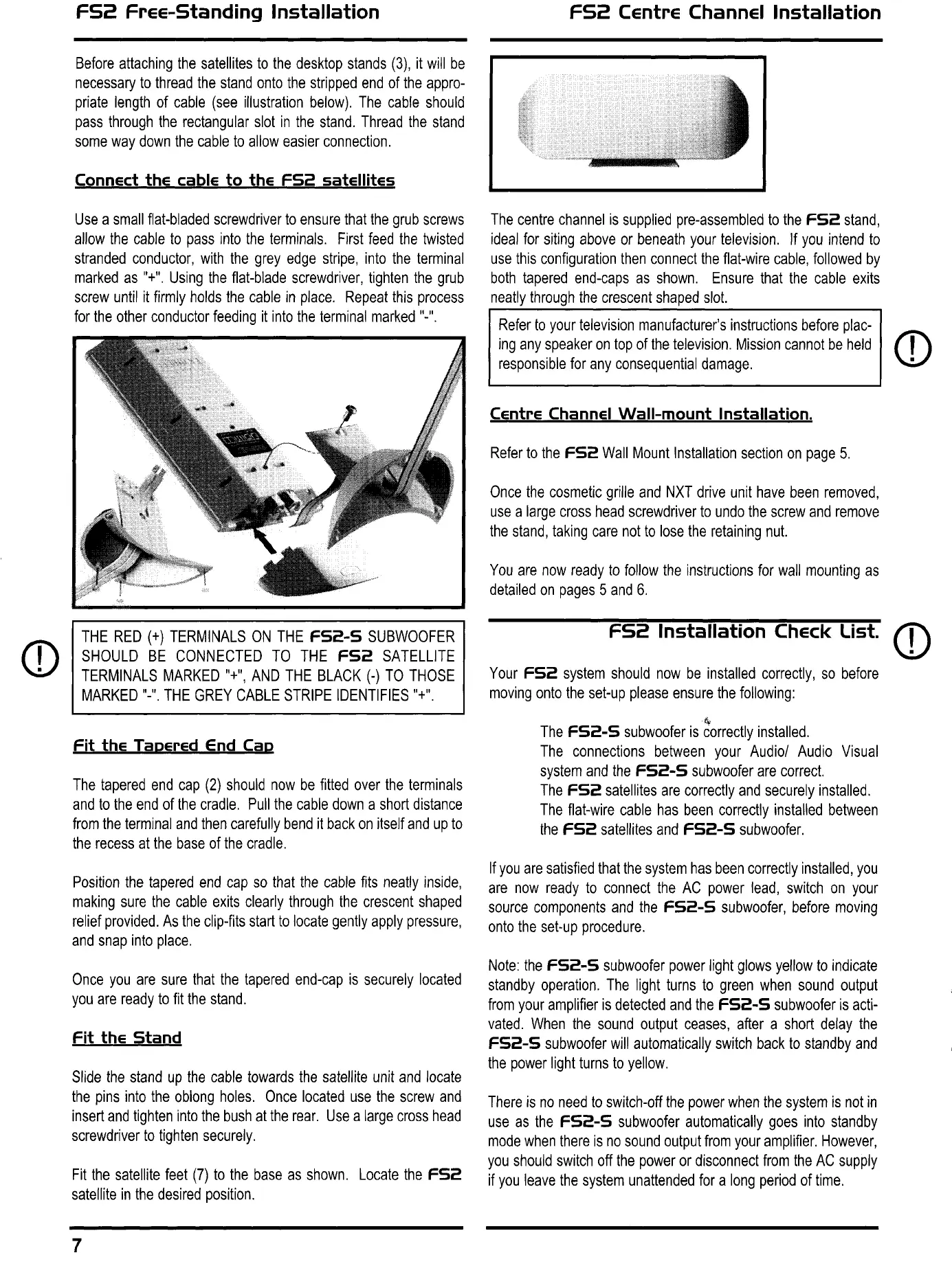 Mission FS2 - F52 Free-Standing Installation; F52 Centre Channel Installation; Connect the Cable to the F52 Satellites; F52 Installation Check List