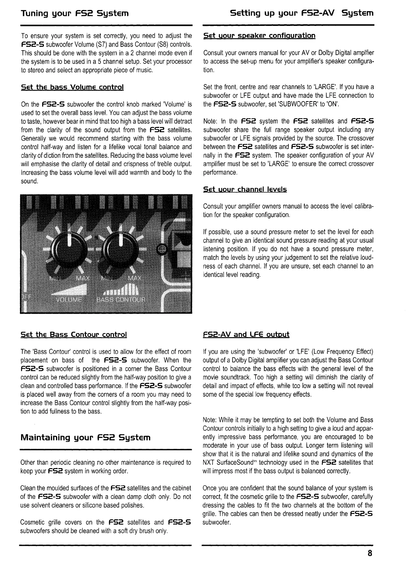 Mission FS2 - Tuning Your F52 System; Set the Bass Volume Control; Setting up Your F52-AV System; Maintaining Your F52 System