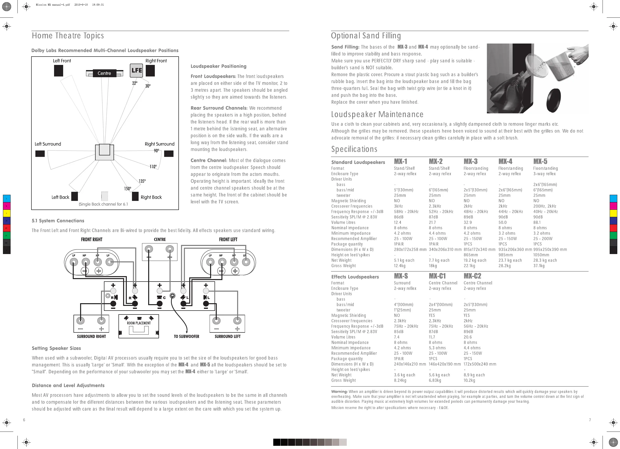 Mission mx1 - Home Theatre System Configuration; Dolby Labs Recommended Positions; 5.1 System Connections; Setting Speaker Sizes in AV Processors