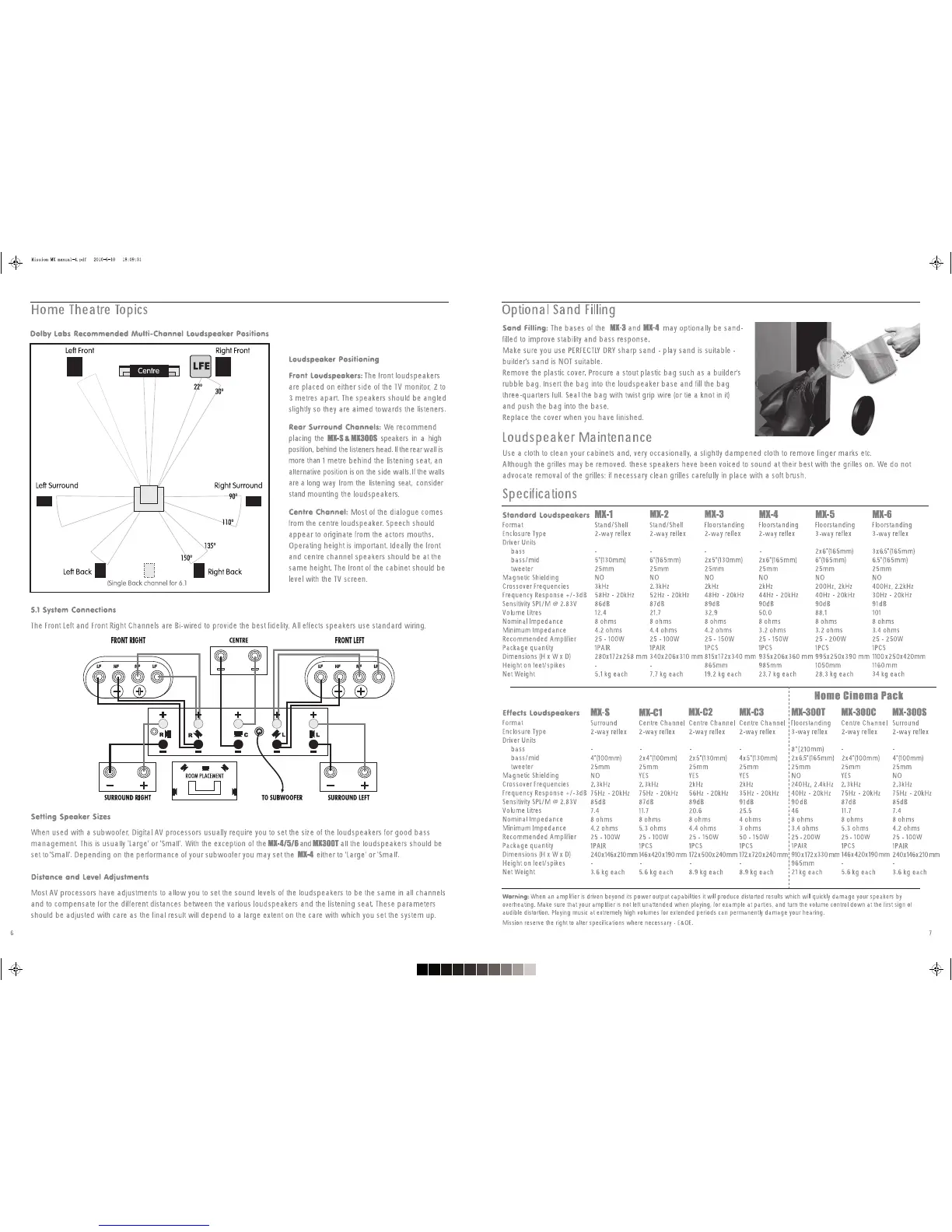 Mission mx1 - Home Theatre System Configuration; Dolby Labs Recommended Positions; 5.1 System Connections; Setting Speaker Sizes in AV Processors