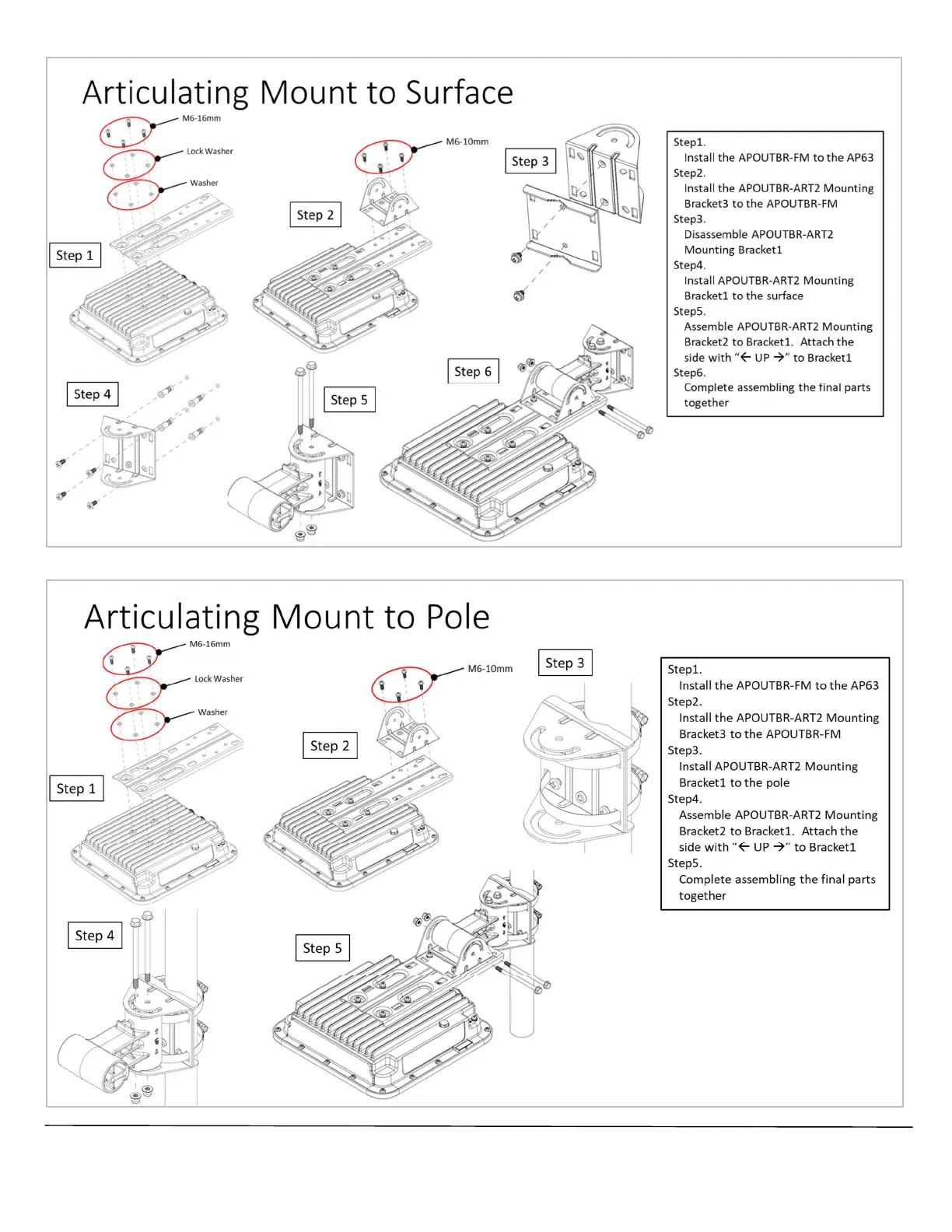 Mist AP63 - Articulating Mount to Surface; Articulating Mount to Pole