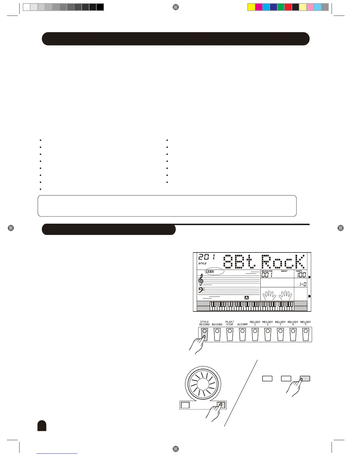Style record allows users to record, produce and compile a new rhythm. The built-in rhythm of the electronic