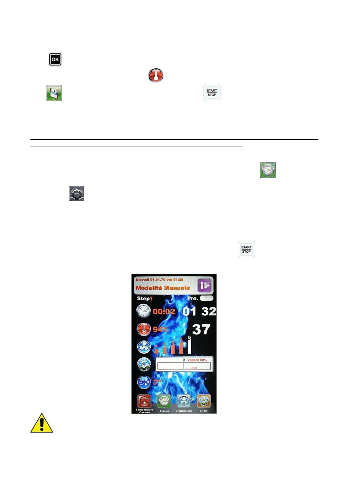 All’avvio del programma, le icone in basso cambiano e fanno riferimento ai parametri di cottura.