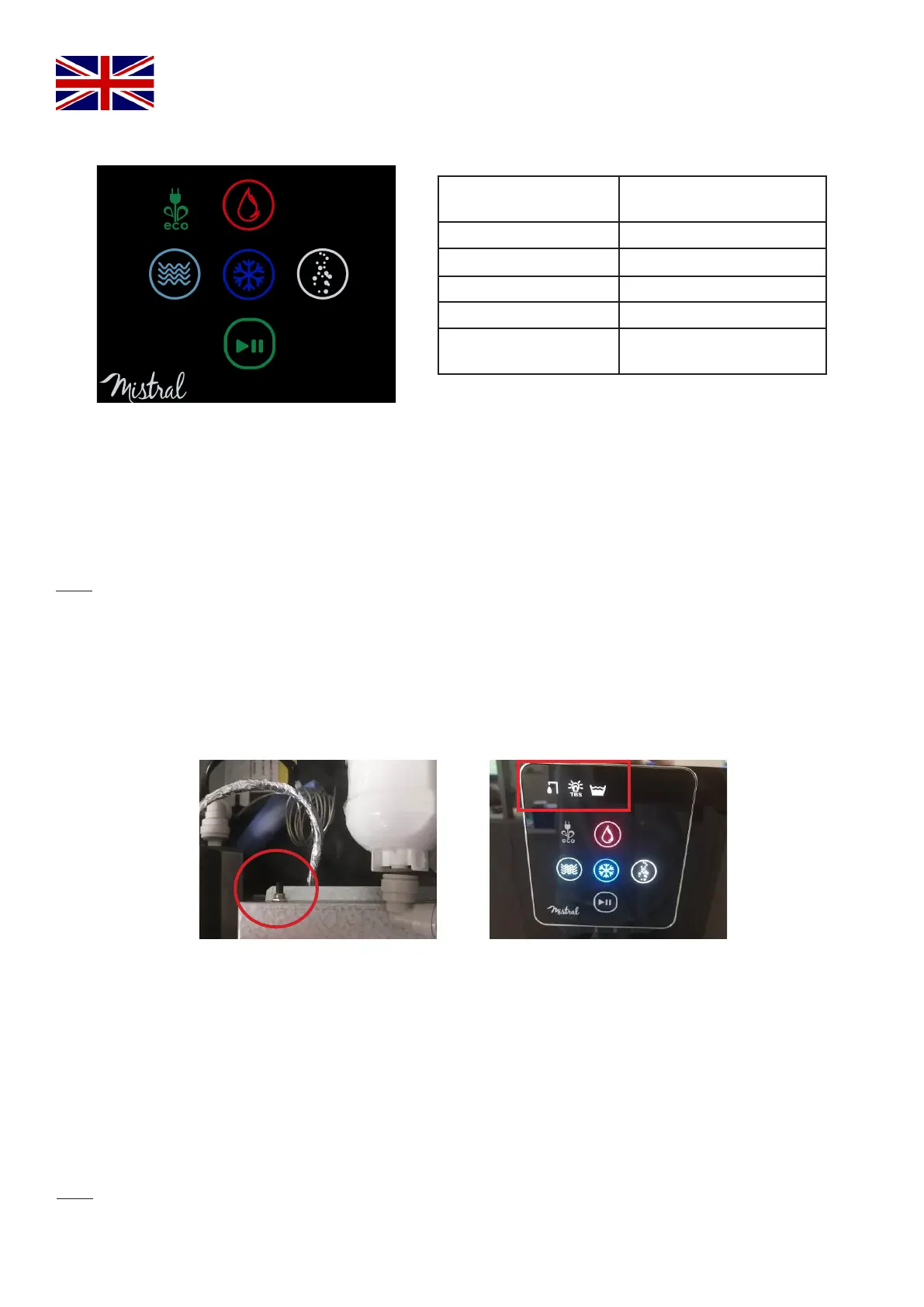 First choose the water you want by pushing on the corresponding button, from 1 to 4 (see below chart).