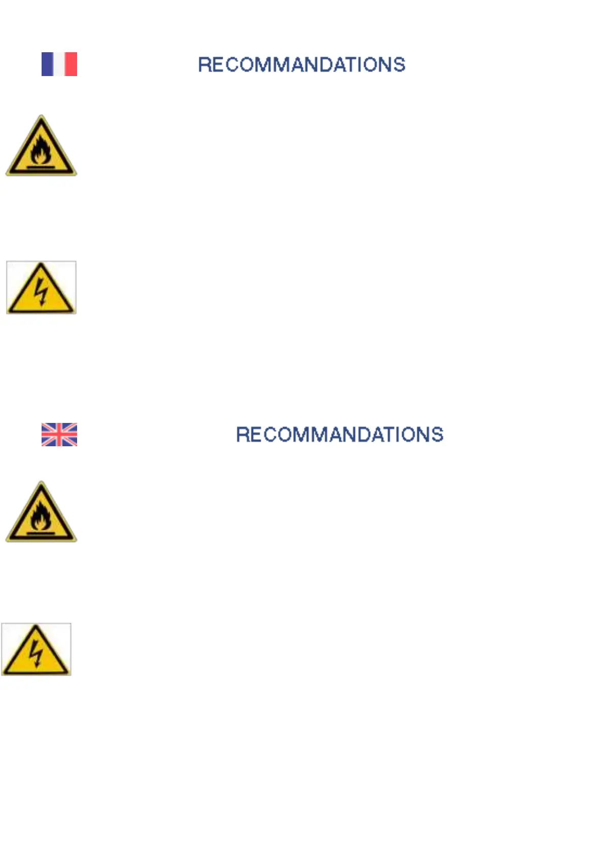 ATTENTION : installer l’appareil dans un lieu aéré, protégé des projections diverses et régulièrement entretenu.
