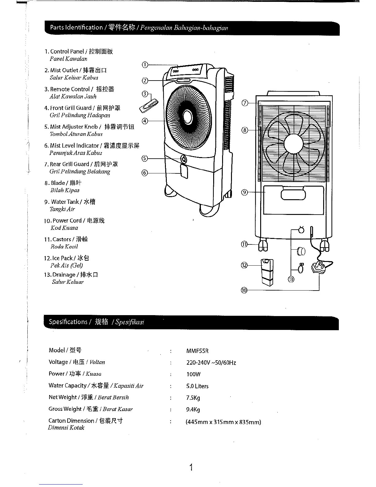 Mistral MMF55R - Parts Identification and Specifications; Parts Identification; Product Specifications