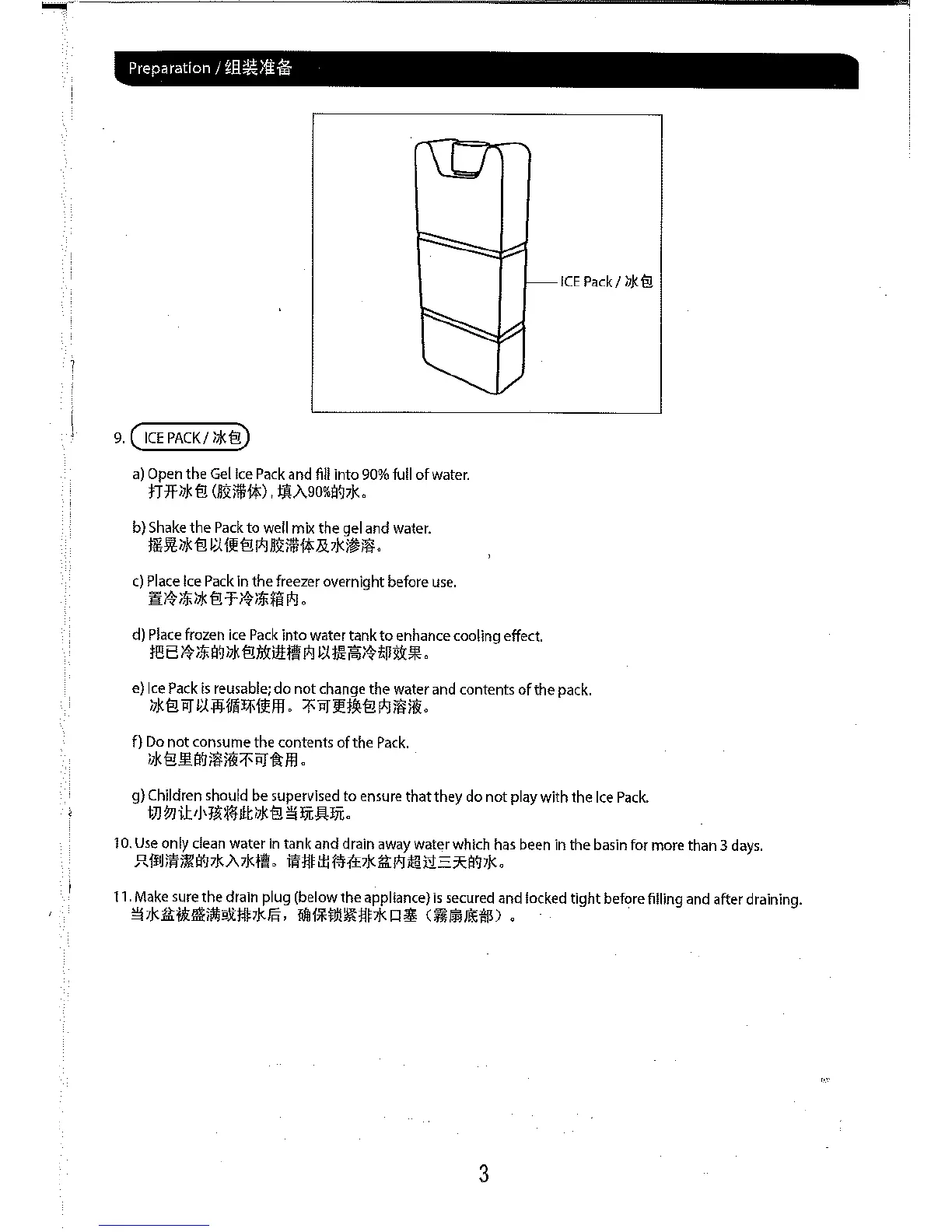 Mistral MMF55R - Ice Pack Preparation; Water Tank and Drain Plug