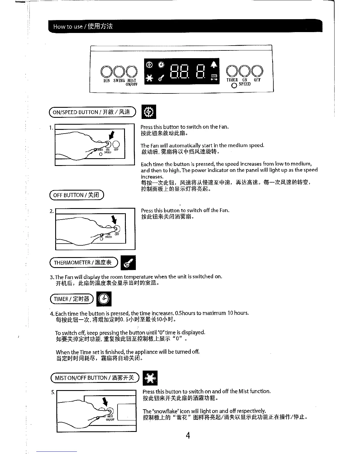 Mistral MMF55R - Using Your Mist Fan; Fan Power and Speed Control; Temperature and Timer Functions; Mist and Ionizer Controls