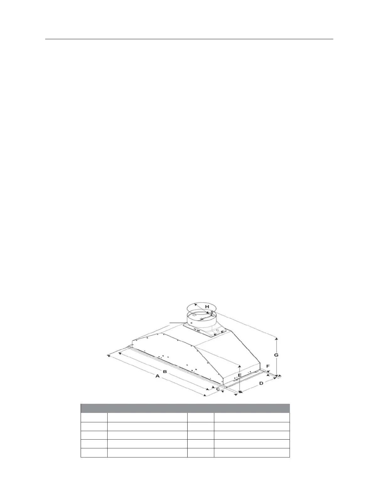 information. The hood is configured for installation with a discharge to the outside through the roof or wall.