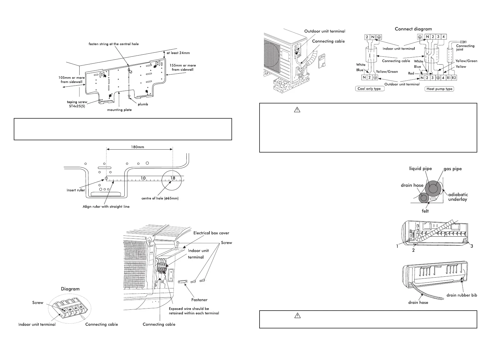 • Special cable must be used to connect indoor unit and outdoor unit. Ensure that the