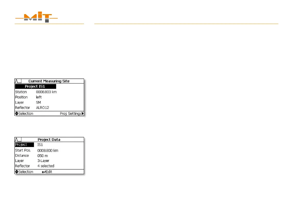 After activating the item “Project Data” in menu “Current Measuring