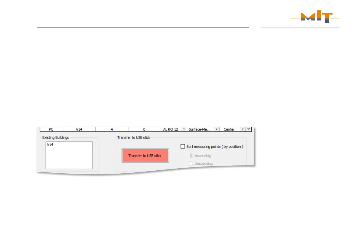“Transferred to the USB stick”. The set up measuring sites are shown
