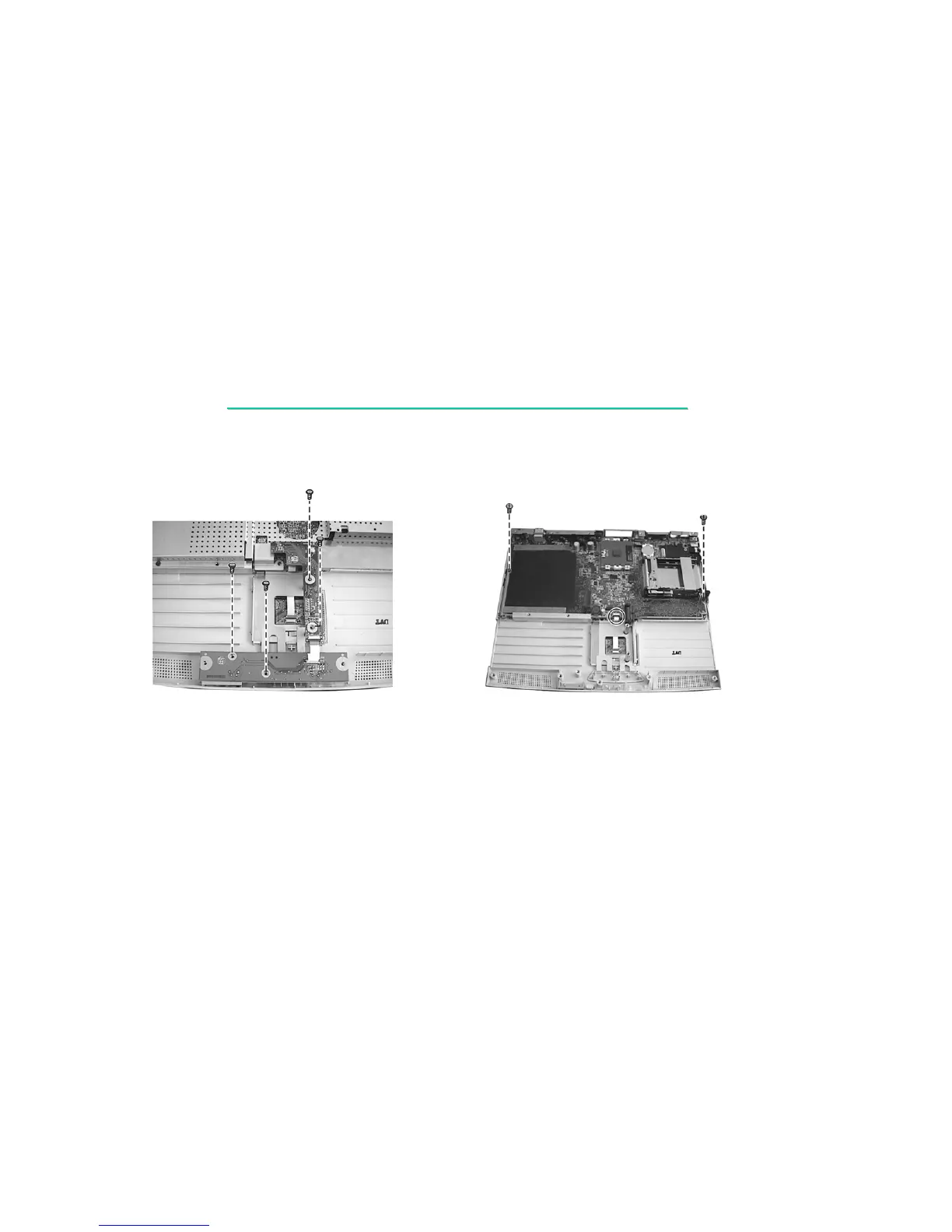 1. Fit the system board into place and secure with two screws.
