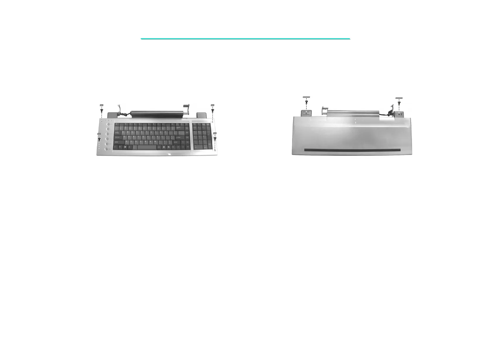 9. Remove two rubber foots and two screws on the bottom of keyboard. Then detach the keyboard cover.