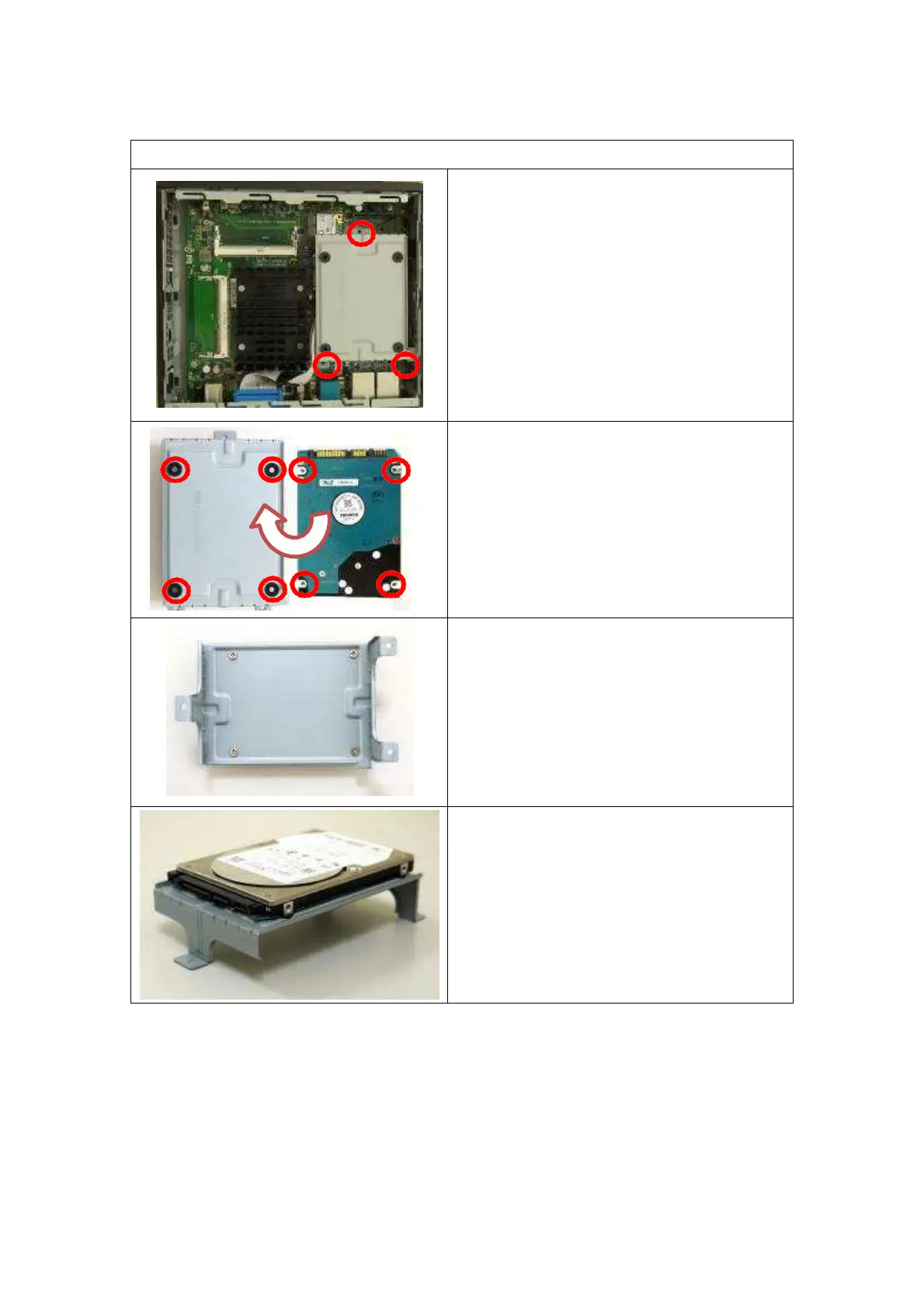 Align the screw holes for HDD and bracket