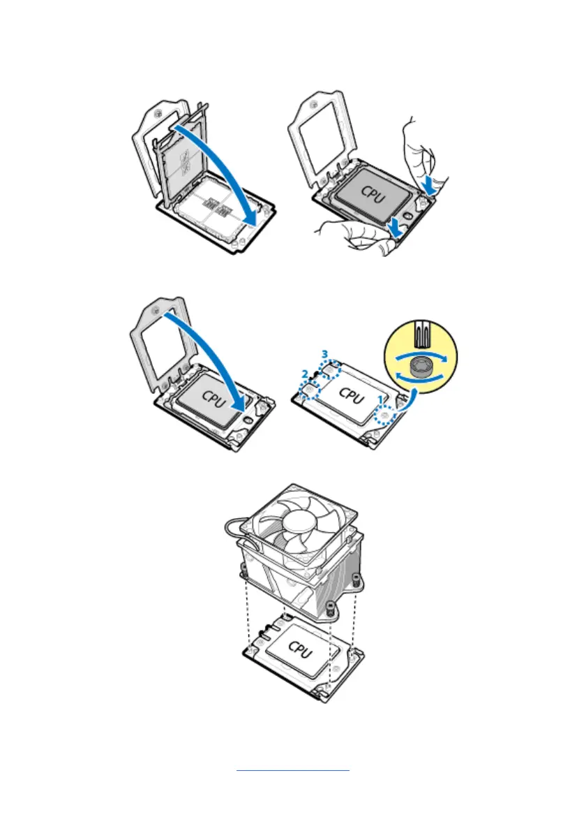 8. Align and install the CPU heatsink onto the top of the CPU socket.