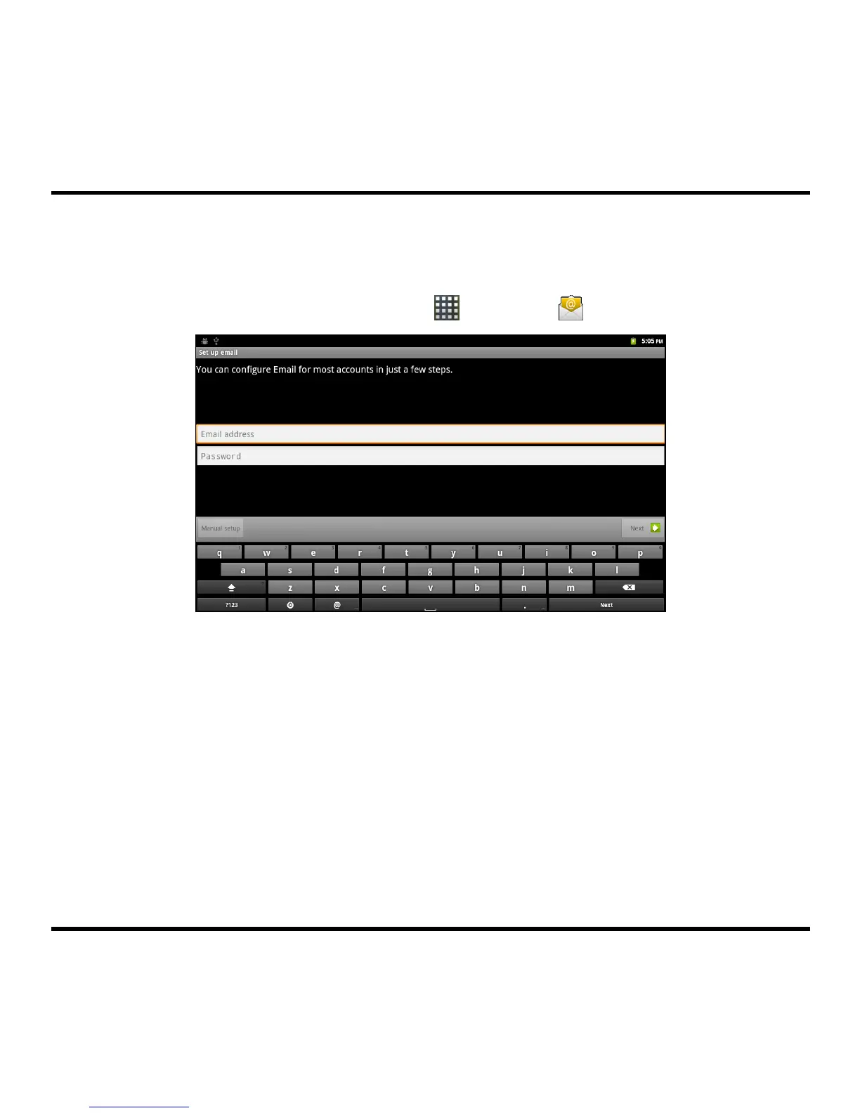 from the mail server to Email. When done, the Inbox folder is displayed on the screen.