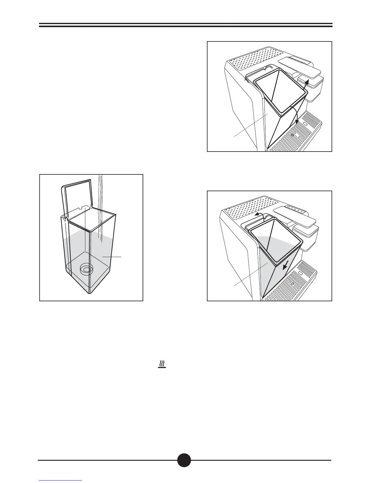 operations in progress are interrupted. Remove the tank (8) and fill it with water to restore machine