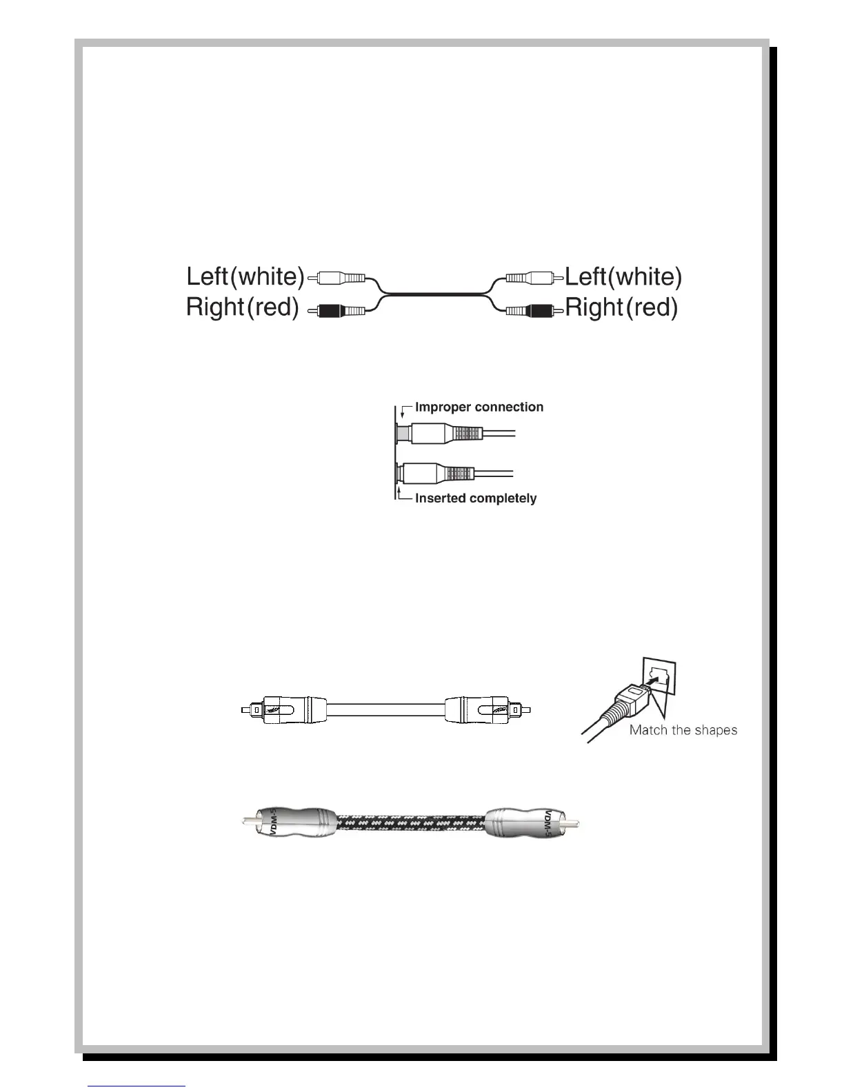 - Ensure a good connection by making sure to insert plugs completely. Failure to insert fully can cause noise or