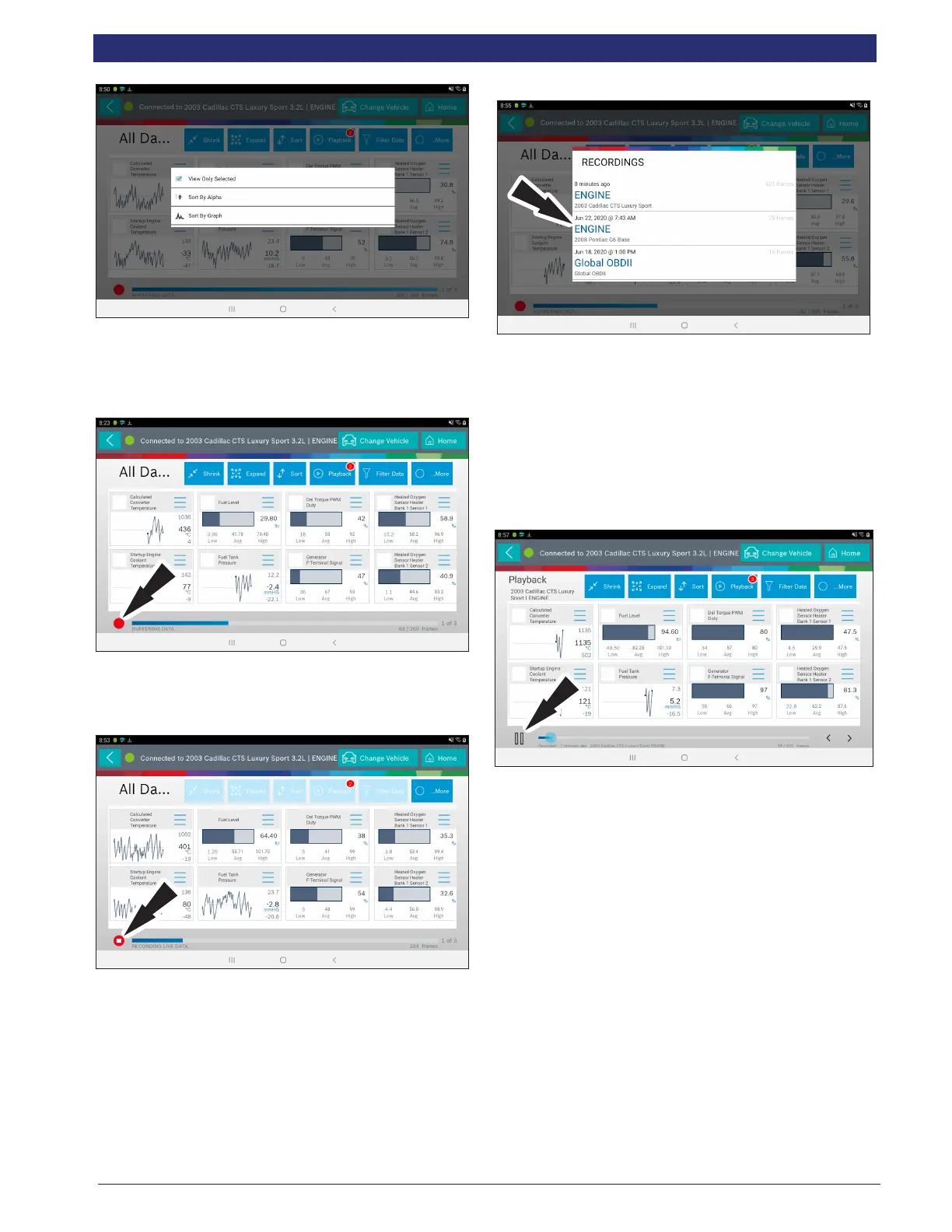 1. Select Playback to view previously recorded data