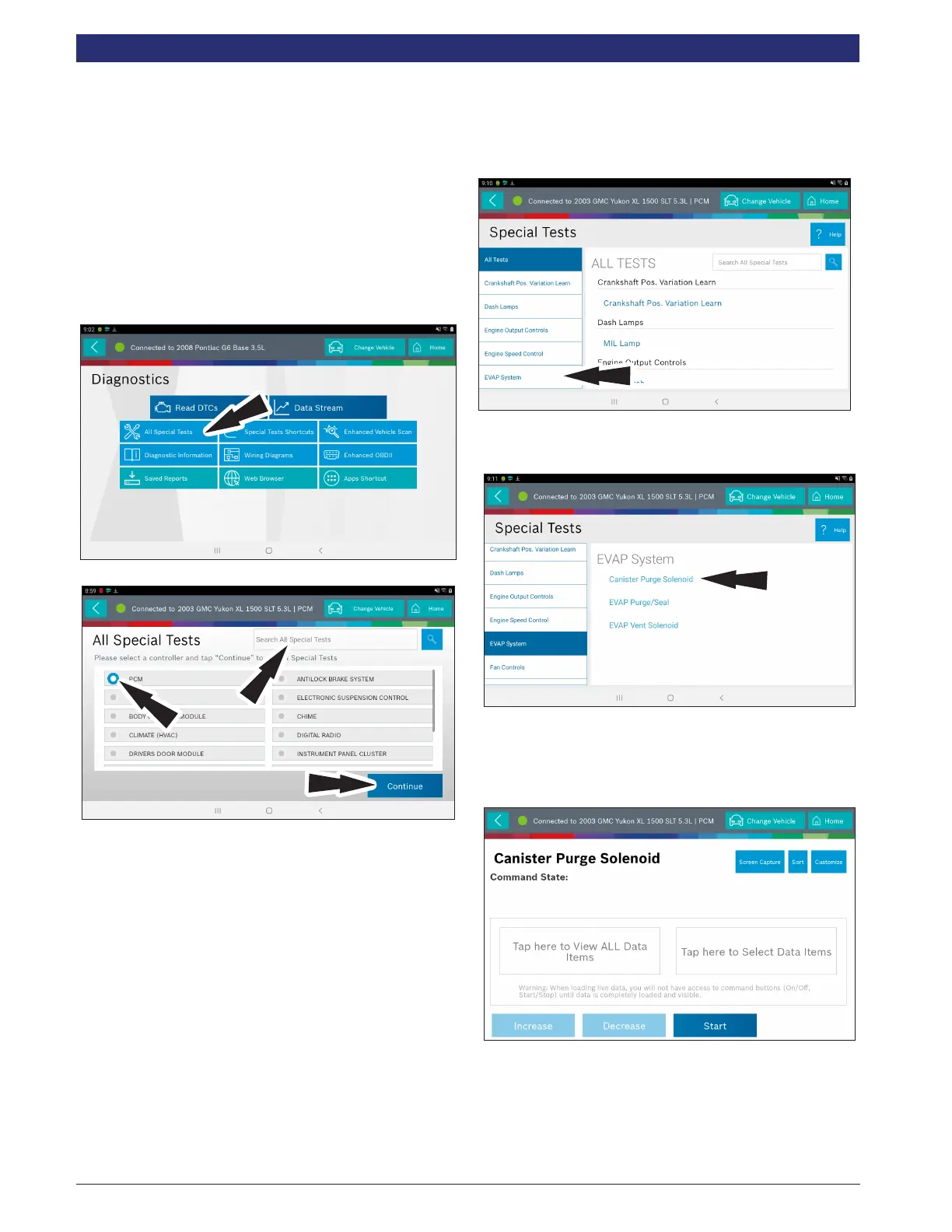NOTE: Special Tests vary by vehicle. Select test to run a