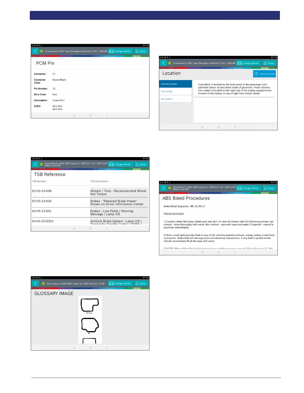 Displays TSBs associated with the vehicle/controller