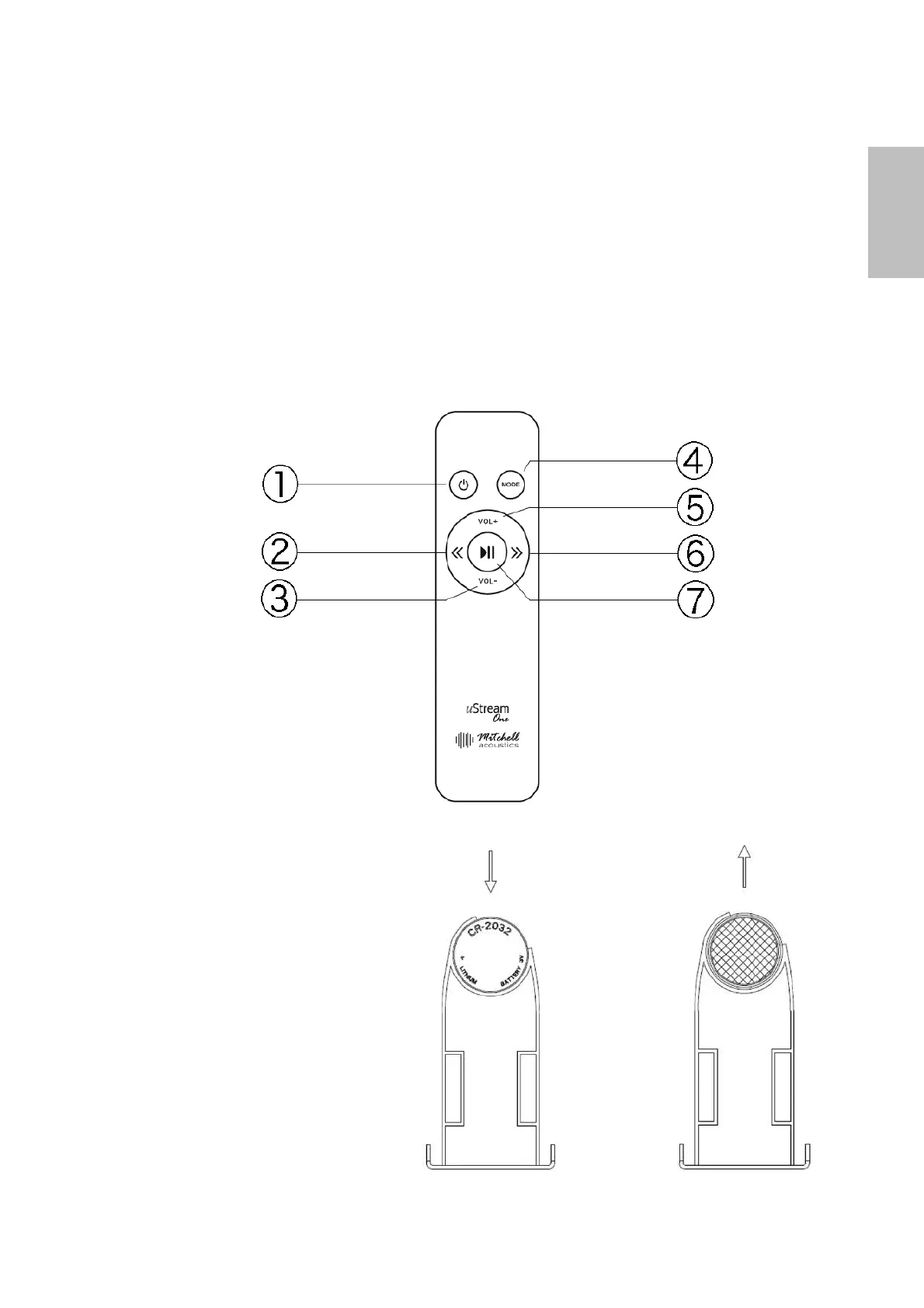 7. Play/Pause. Press and hold for 5 seconds to discounnect BT connection.